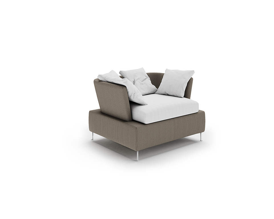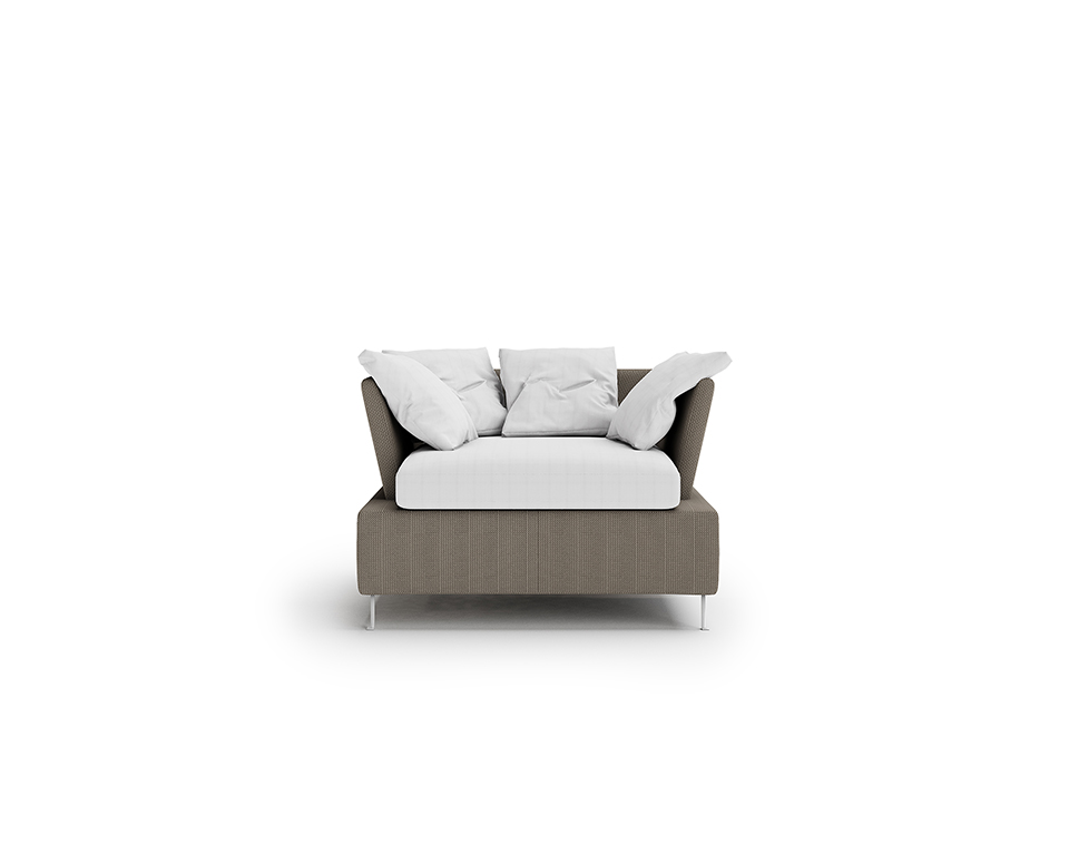 Finiture: Struttura in tessuto metallico per esterno – Cuscini sfoderabili nei tessuti per esterni