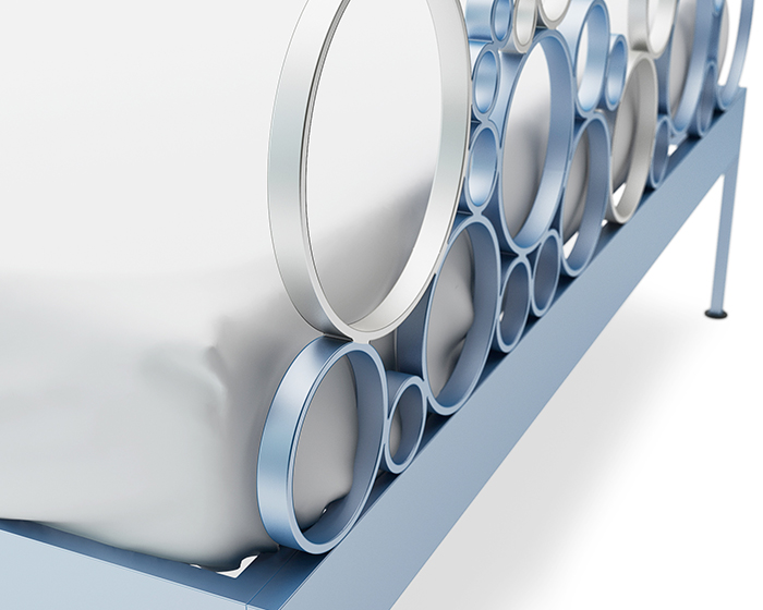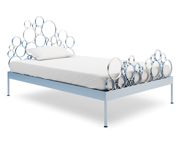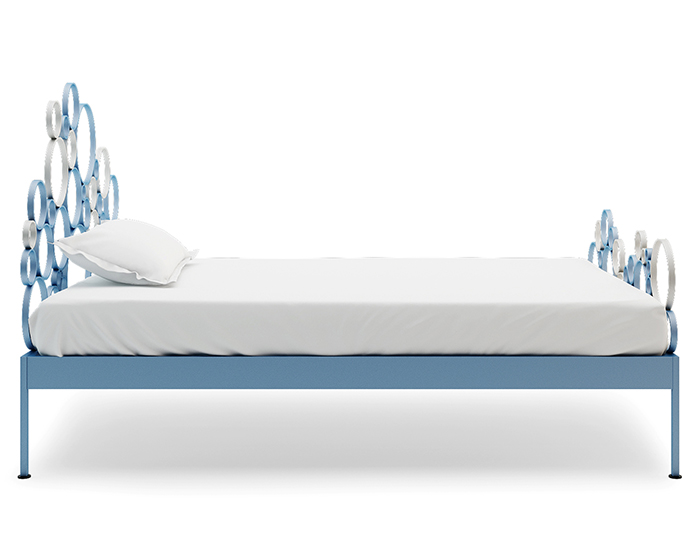 Letto in ferro pieno verniciato opaco azzurro e perla