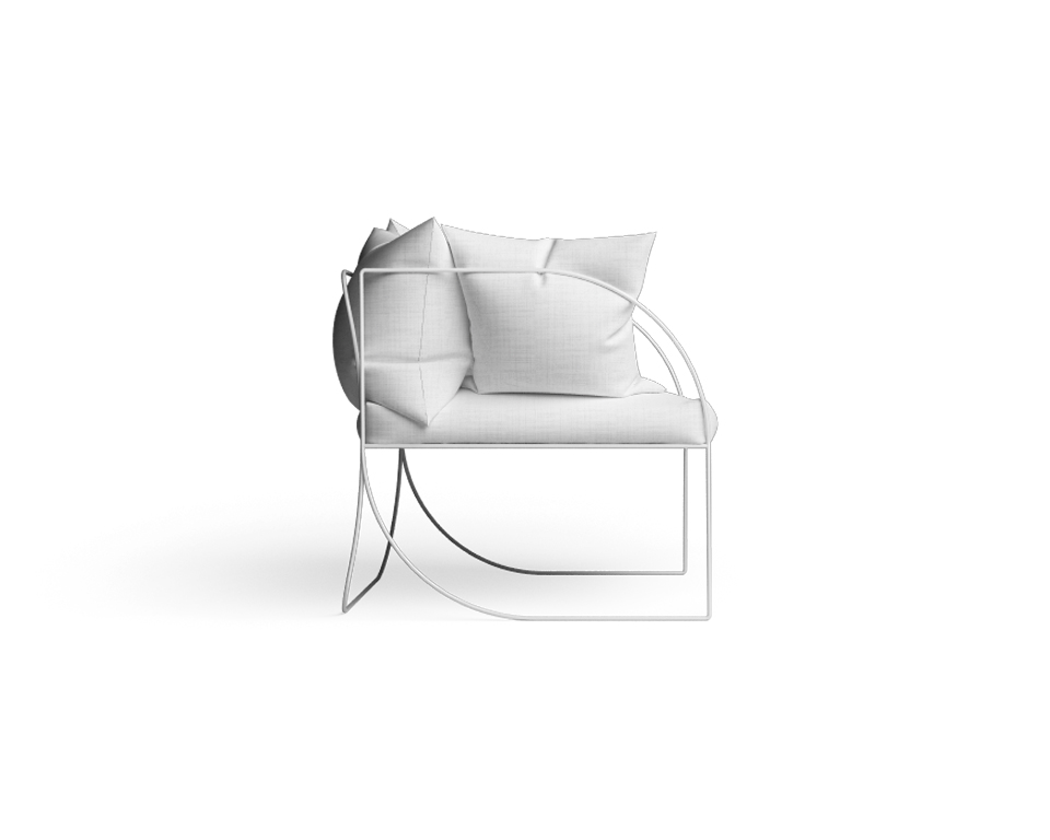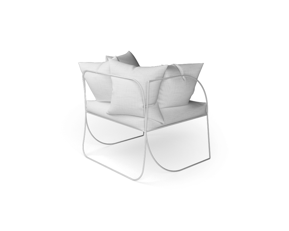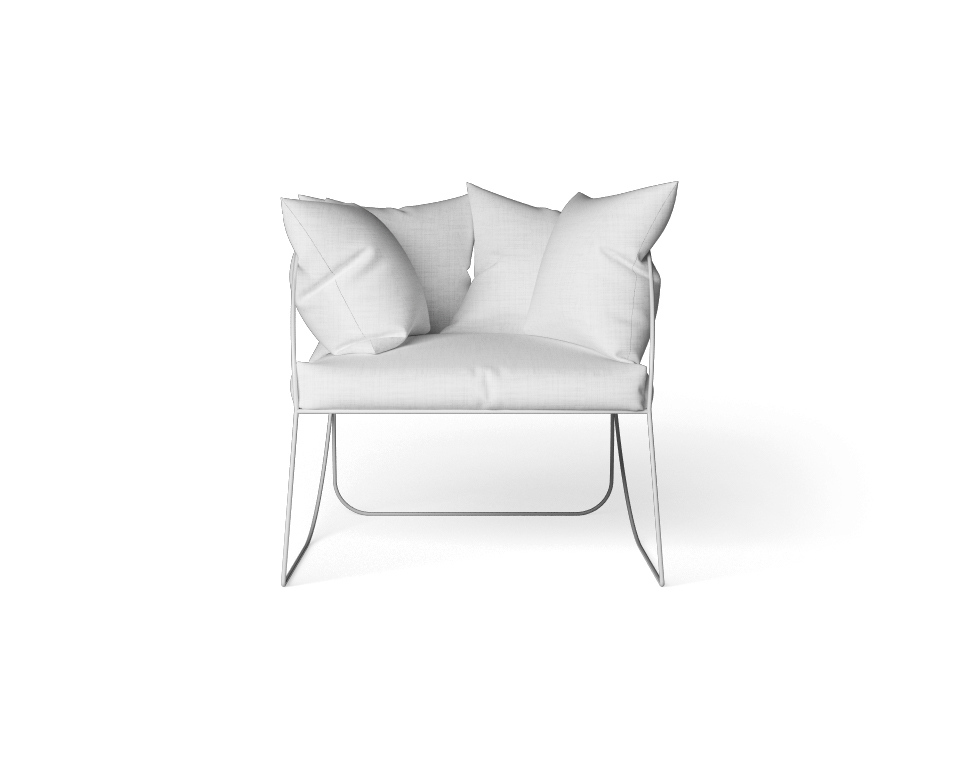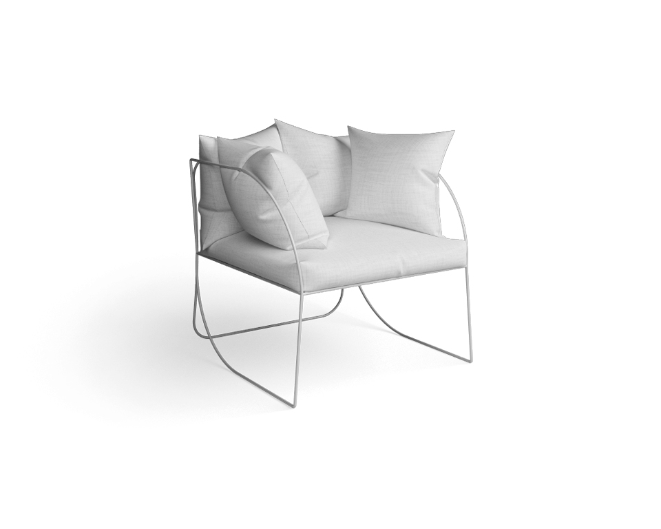 Poltrona con struttura in acciaio verniciato e cuscini in poliuretano