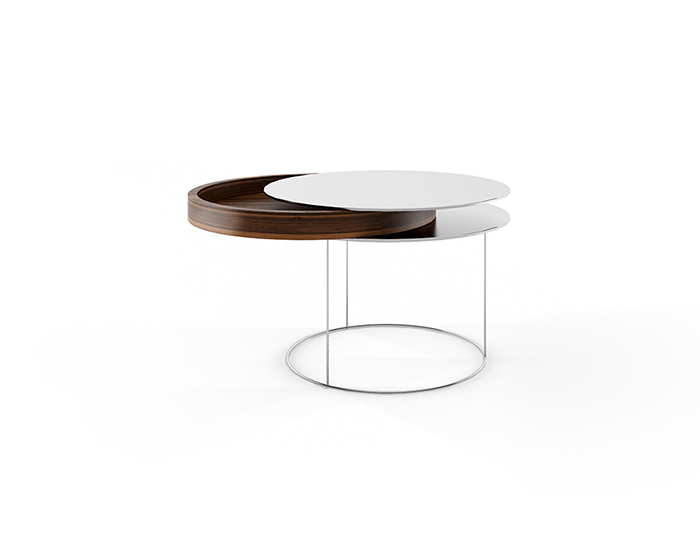 Finiture: Acciaio inox, Ferro naturale, Ferro satinato, Ferro verniciato opaco – Vassoio: Legno, Laccato opaco