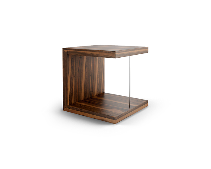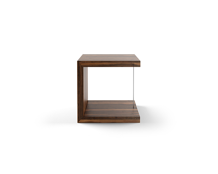 Tavolino in legno di noce europeo con inserto acciaio inox