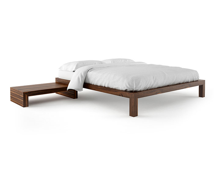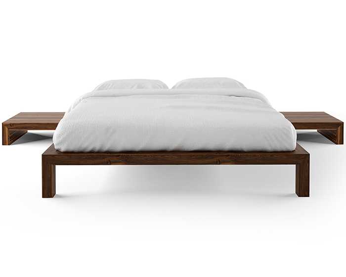 Letto sommier in legno di noce europeo con comodini