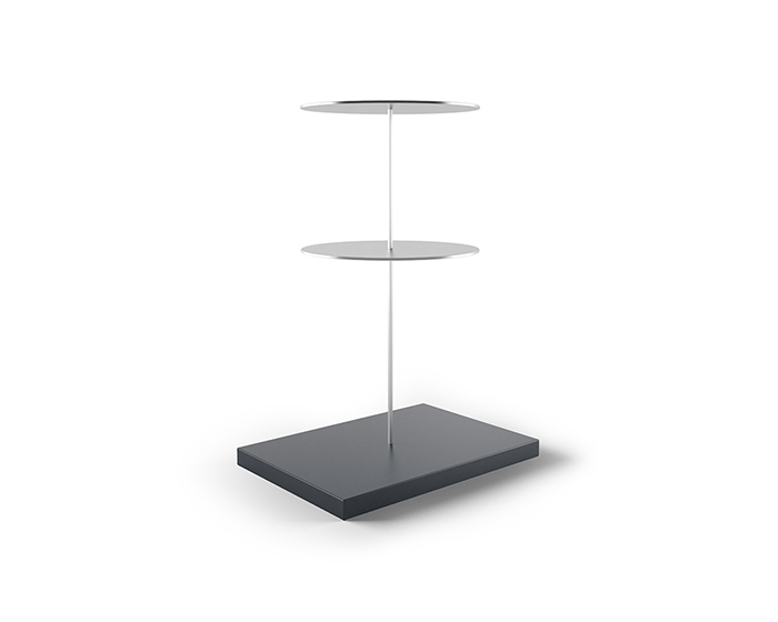 Tavolino in ferro satinato con base laccato opaco ardesia