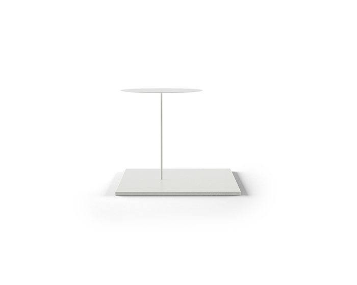 Tavolino in ferro verniciato opaco bianco con piano ellittico