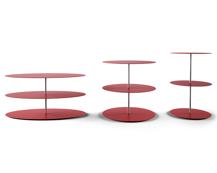 Tavolini in ferro verniciato opaco vinaccia con gambe ferro satinato (da sx 1 , 2 , 3)