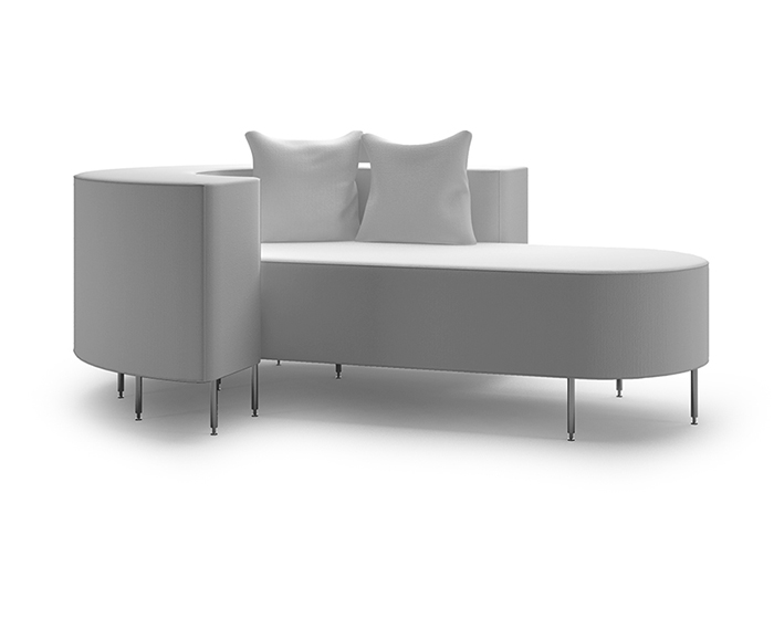 Dormeuse rivestita in lino colore bianco con piedi acciaio inox