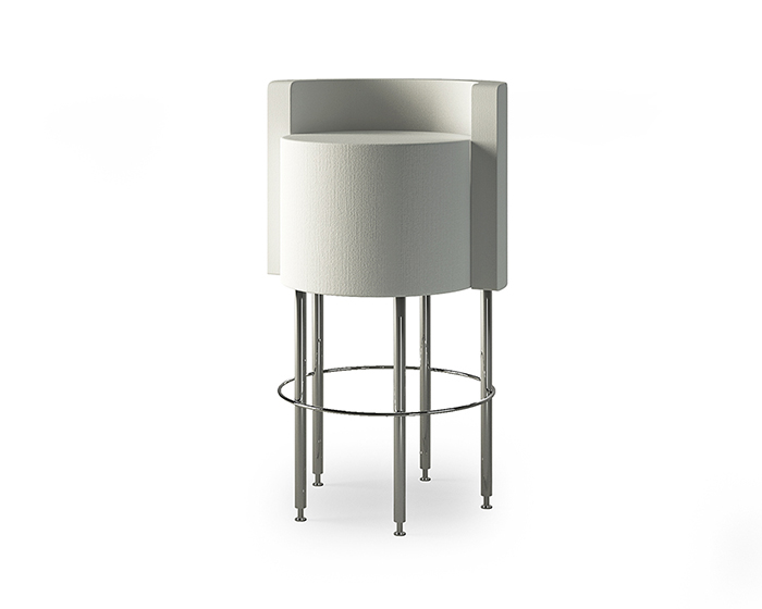 Sgabello rivestito in lino colore bianco con piedi acciaio inox
