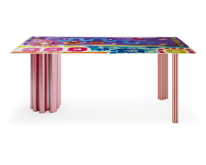 Finiture: base in lamiera e piano in laminato stampato in digitale