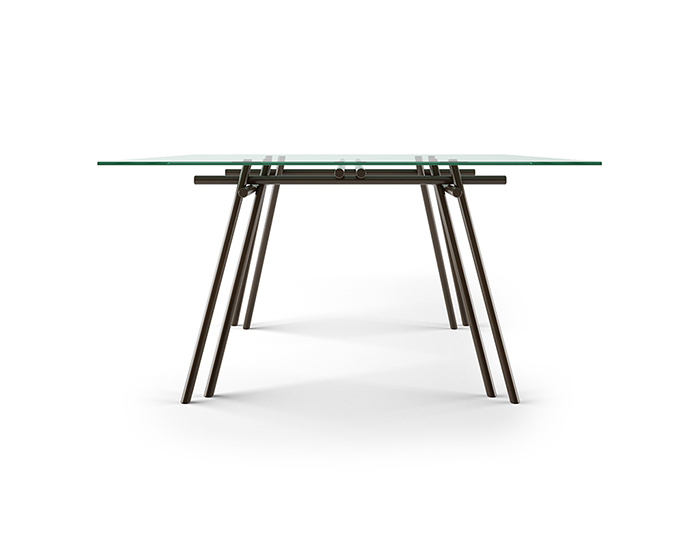Tavolo in legno di faggio laccato opaco testa di moro con piano vetro trasparente