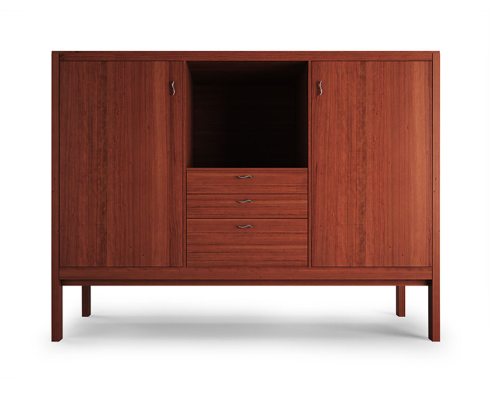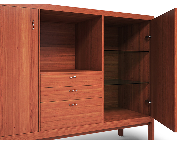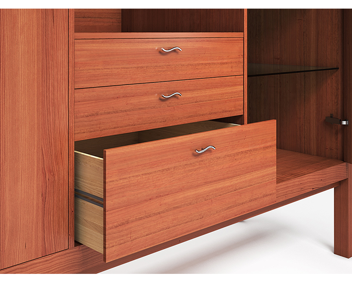 Credenza in legno di ciliegio rosso con maniglie acciaio inox