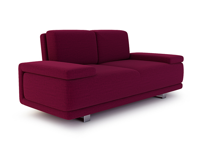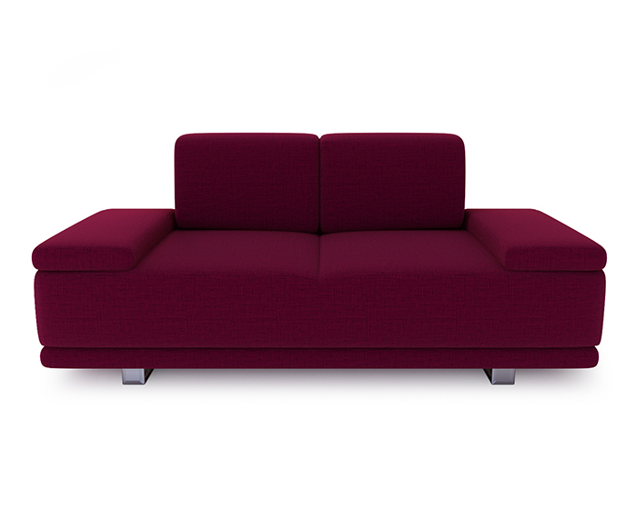 Divano rivestito in canapone colore vinaccia con piedi acciaio inox