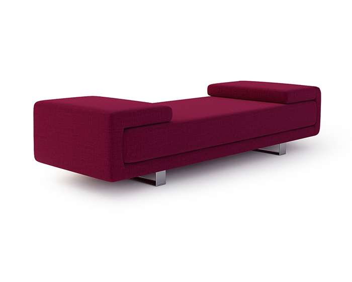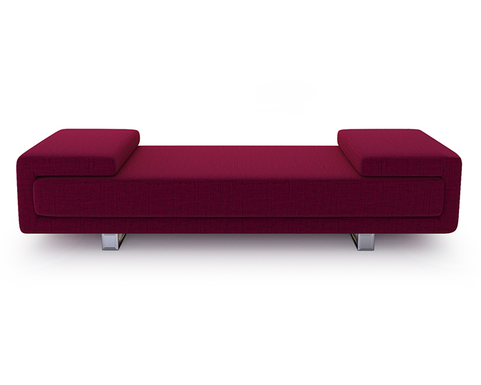 Panca rivestita in canapone colore vinaccia con piedi acciaio inox