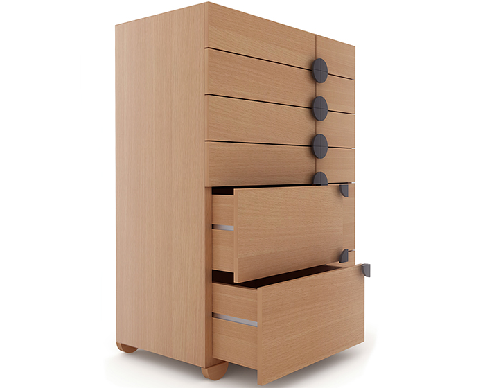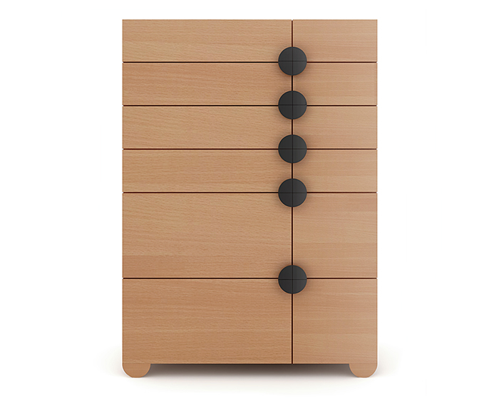 Settimino in legno di faggio con maniglie laccato opaco testa di moro