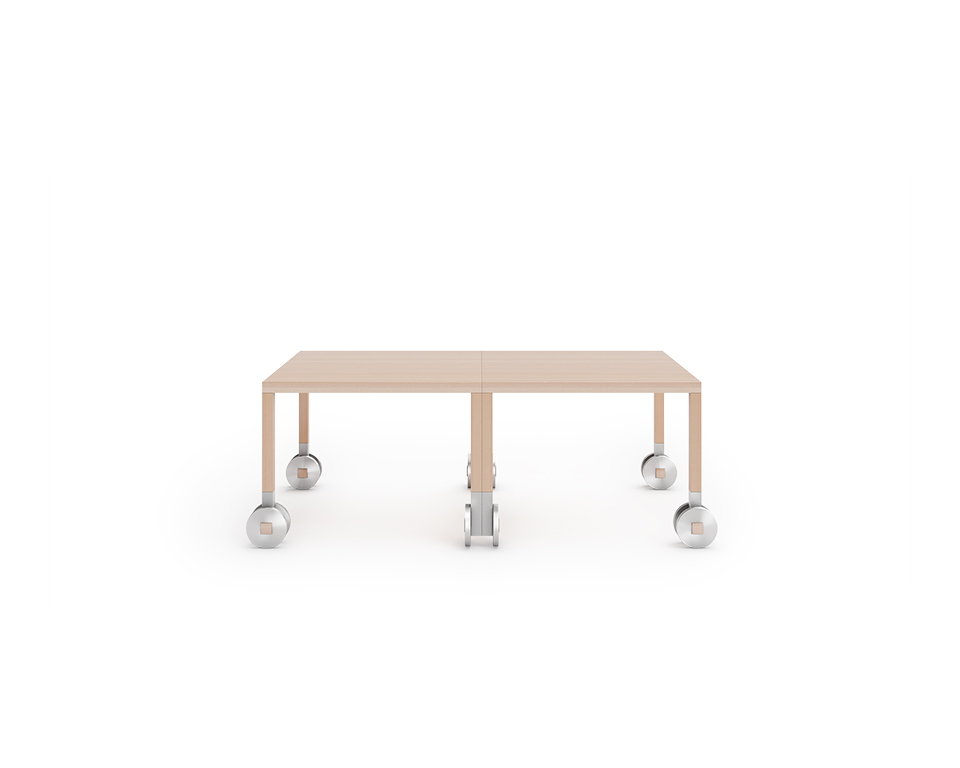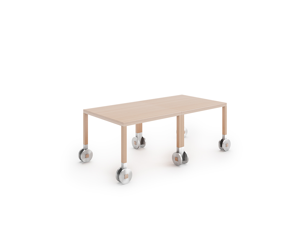 Tavolino in legno di faggio. Ruote supporto in acciaio con finitura faggio.