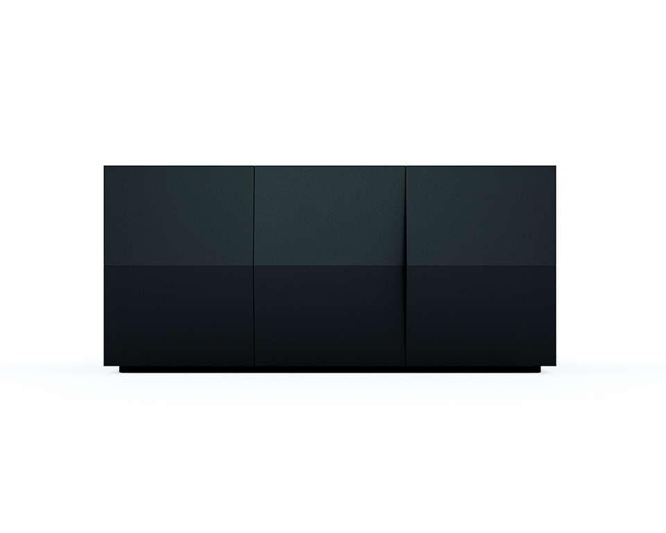 Madia laccato opaco nero grafite con sei cestoni a due cassetti interni.