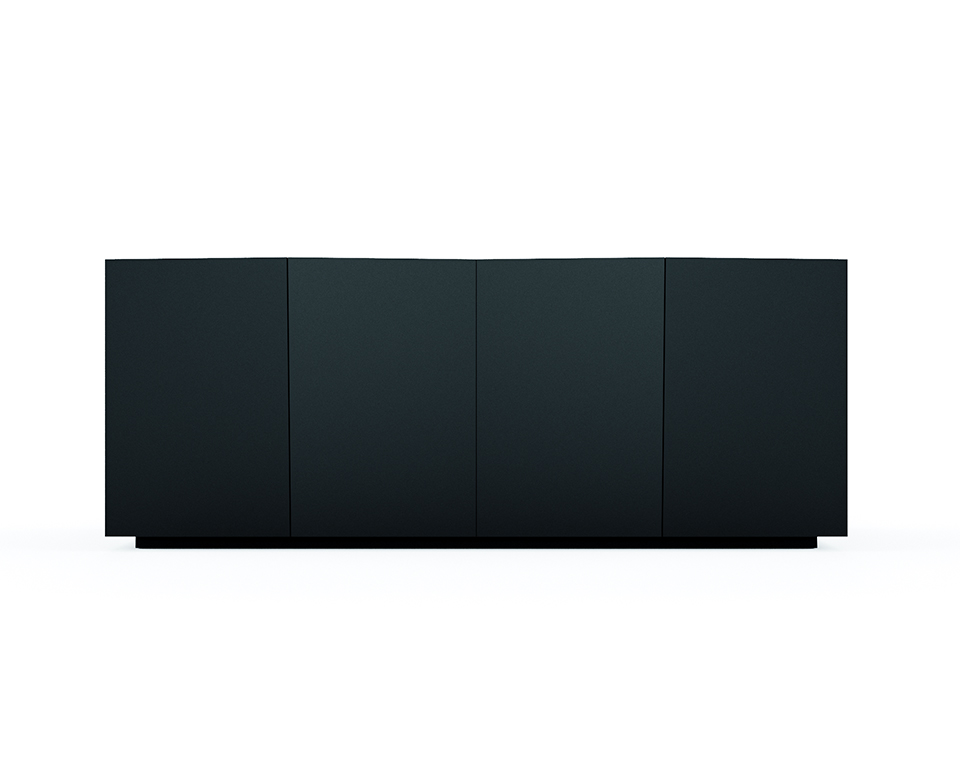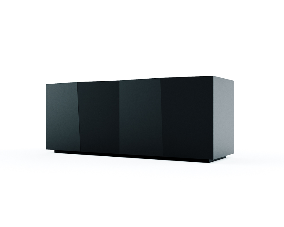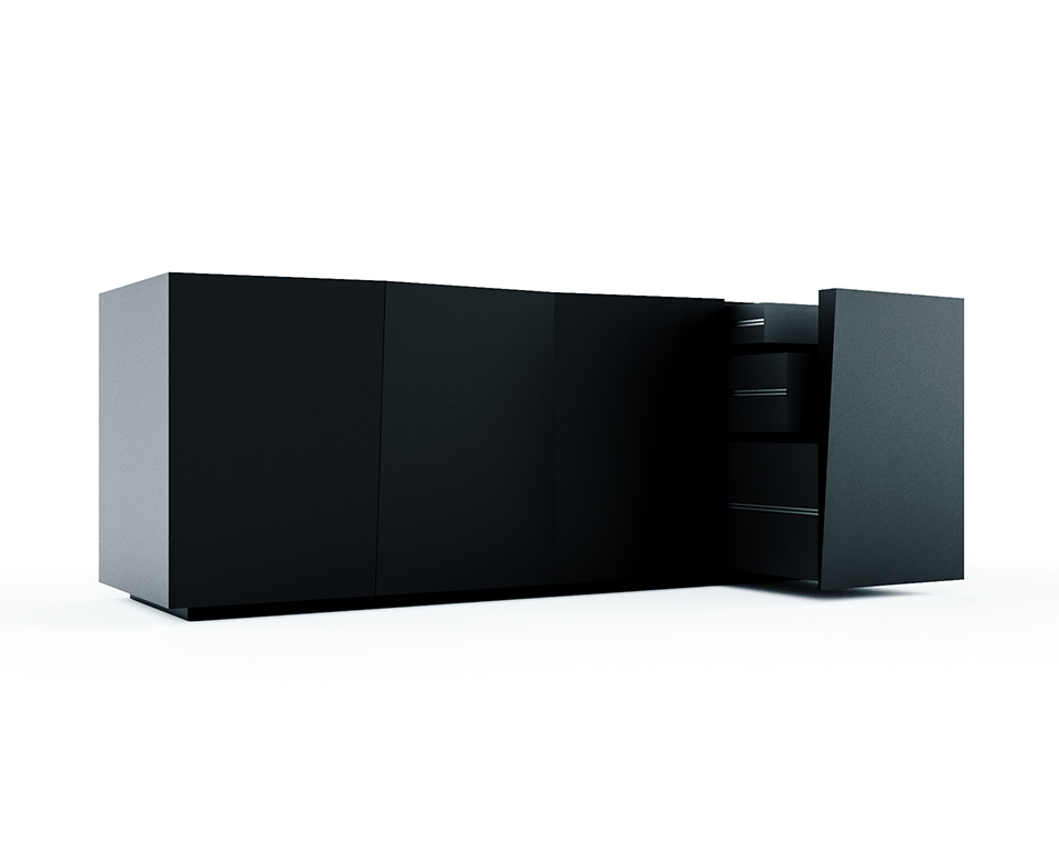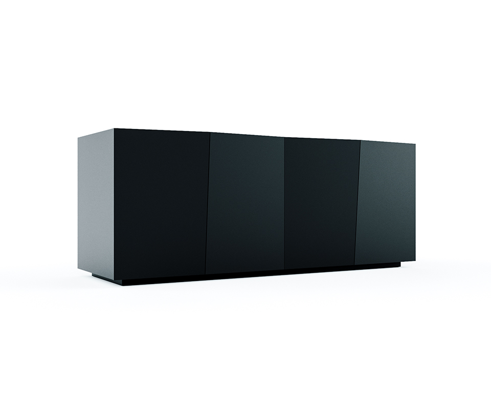 Madia laccato opaco nero grafite con quattro cestoni a tre cassetti interni.