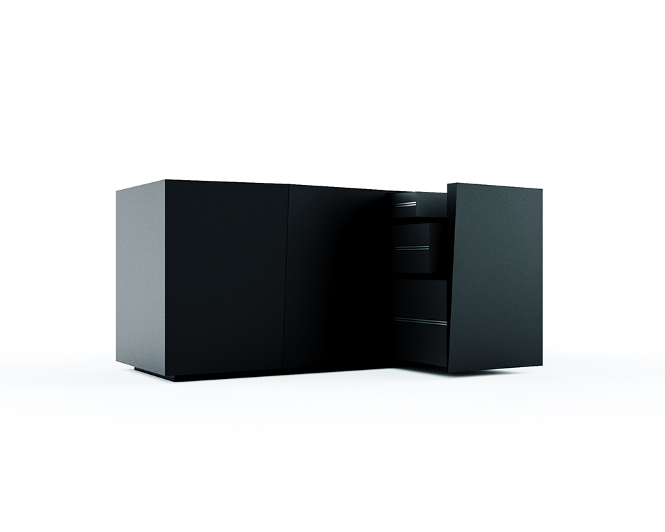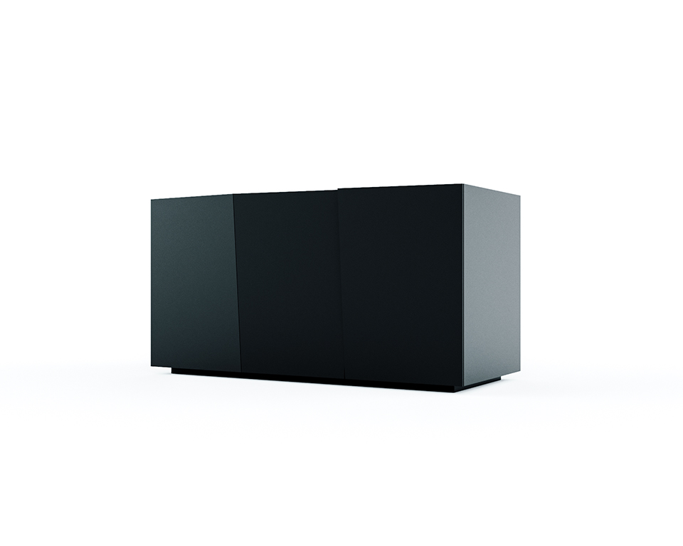 Madia laccato opaco nero grafite con tre cestoni a tre cassetti interni.