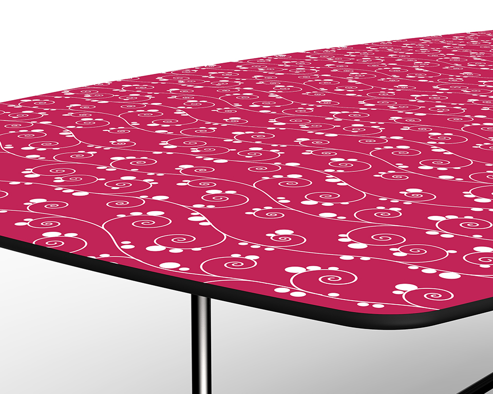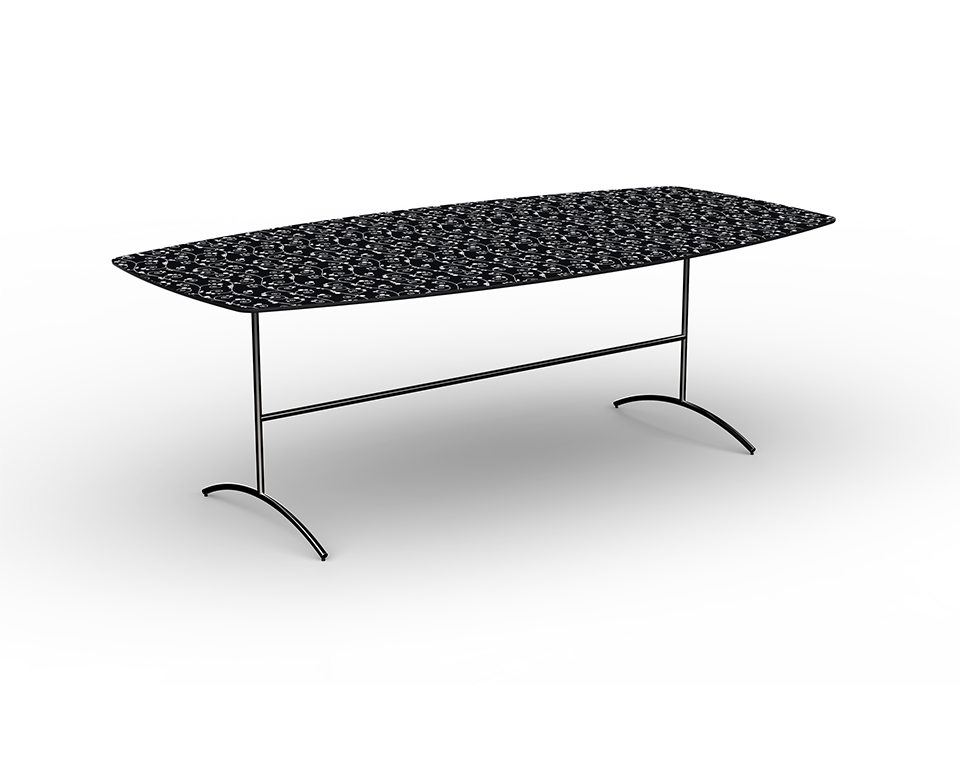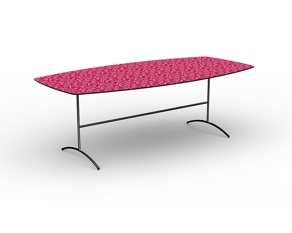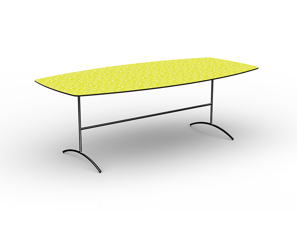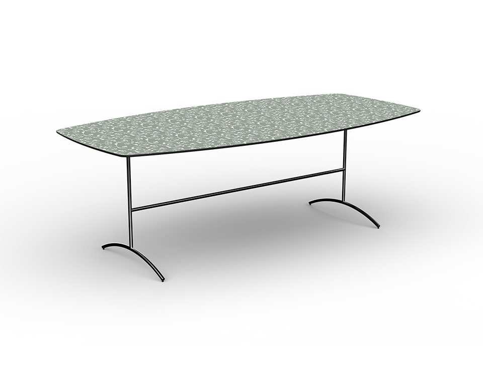 Tavolo ovoidale in acciaio o ferro verniciato con piano in laminato stampato