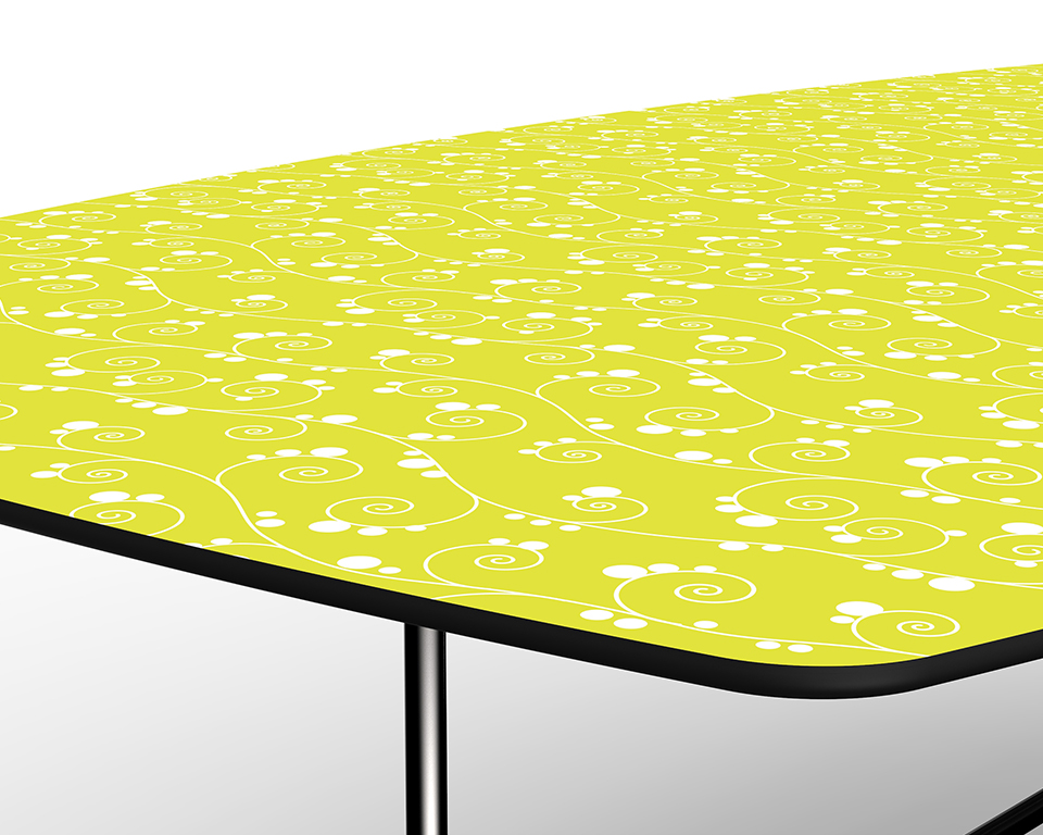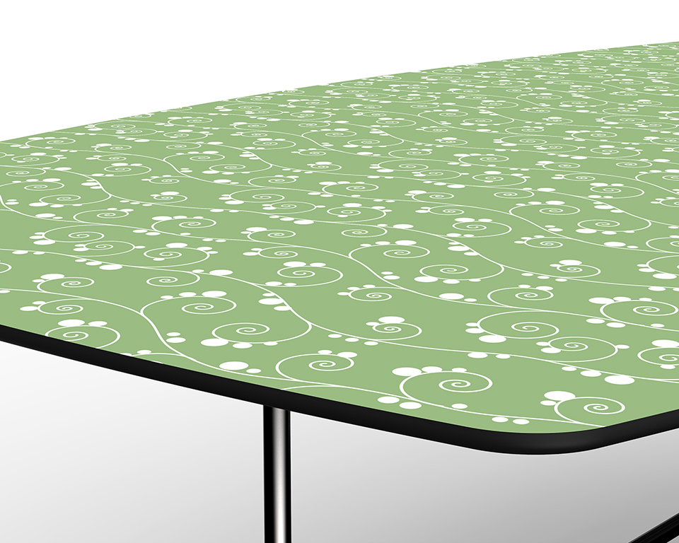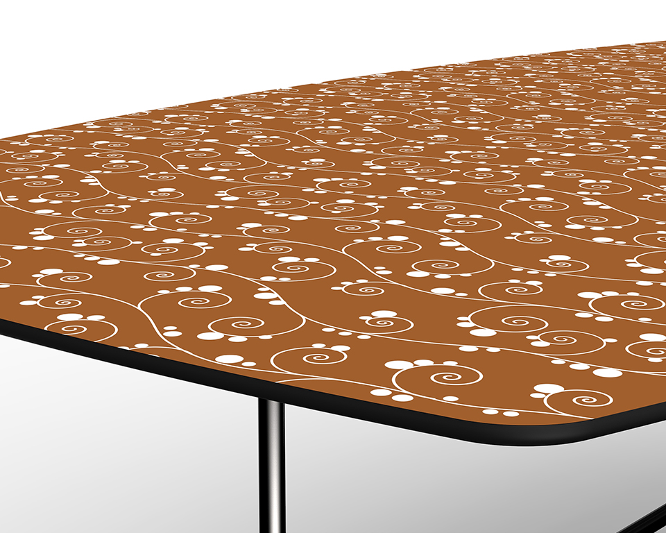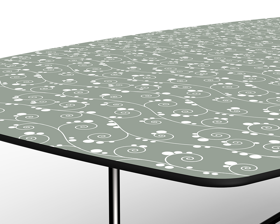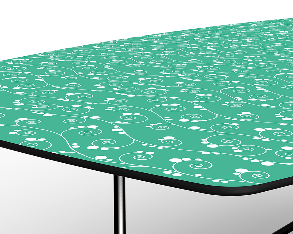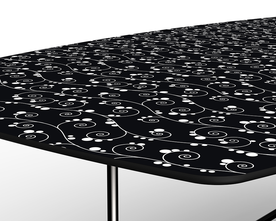 Finiture: Struttura: Acciaio o Ferro verniciato opaco a polvere epossidica. Piano: Laminato stampato in digitale.