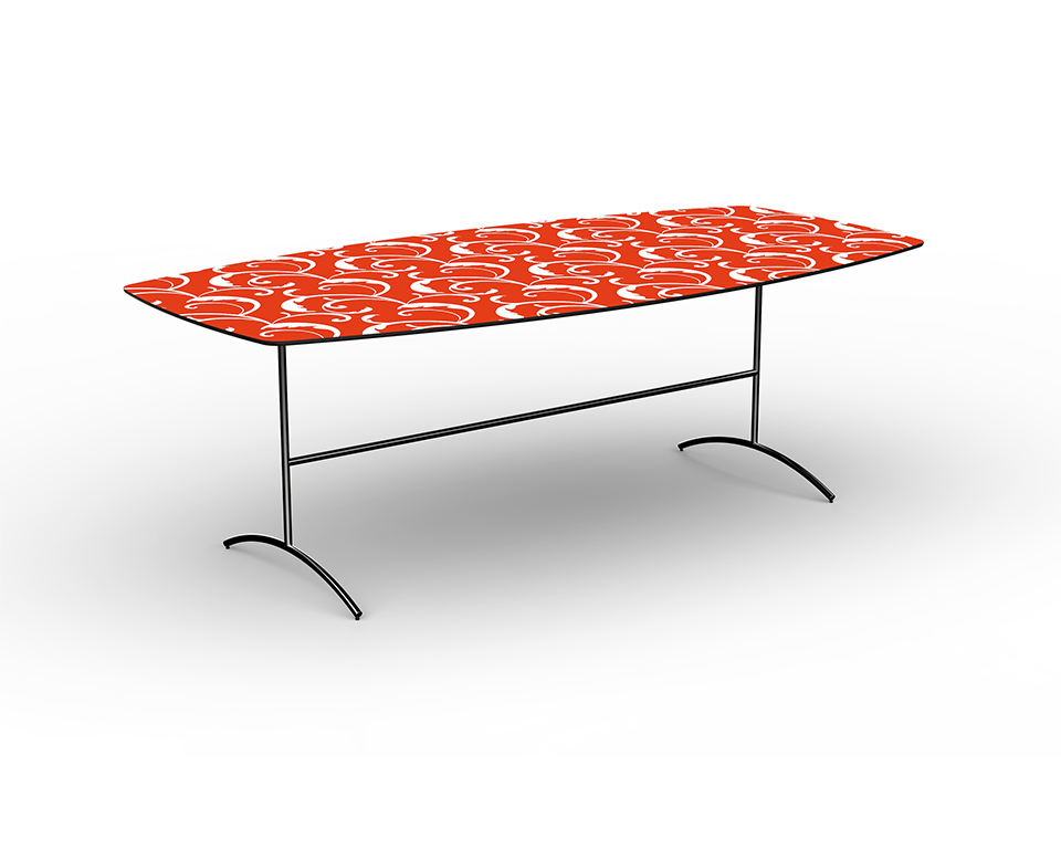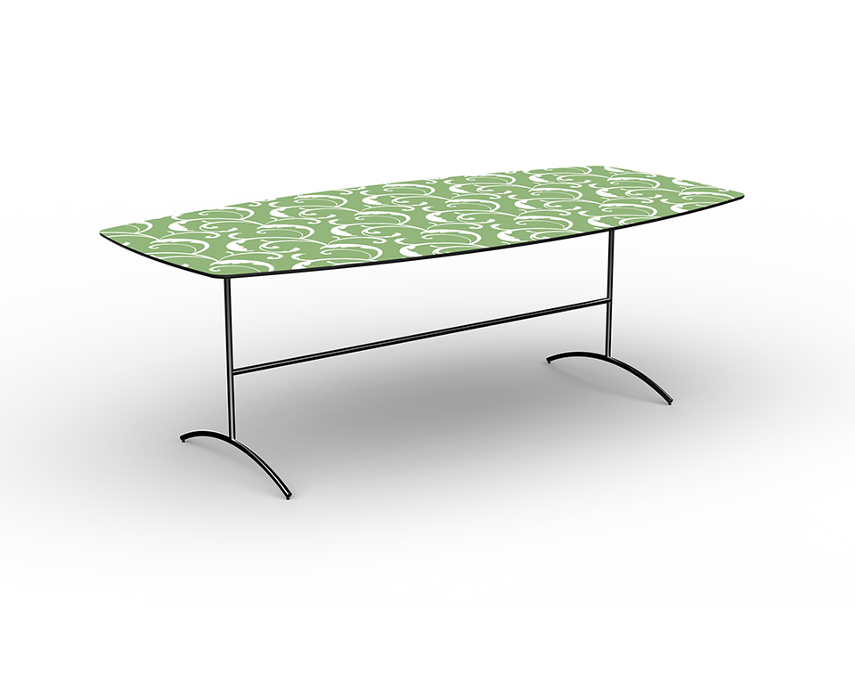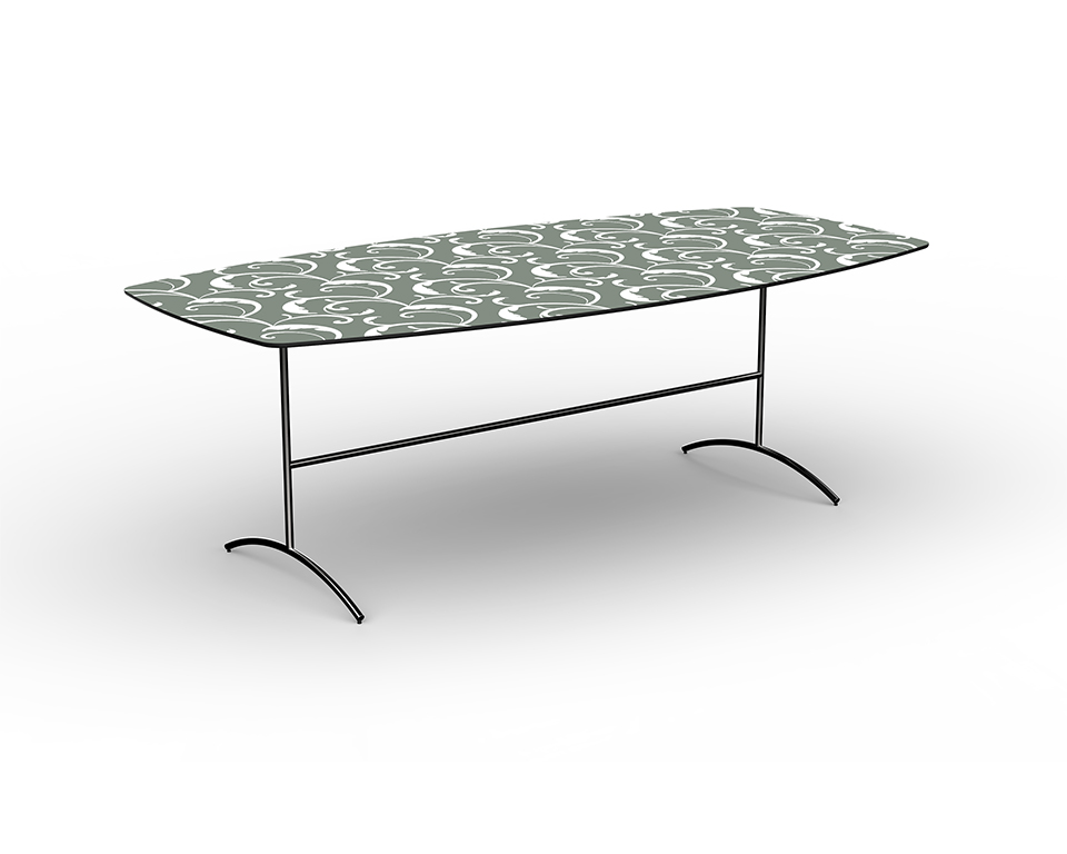 Tavolo ovoidale in acciaio o ferro verniciato con piano in laminato stampato