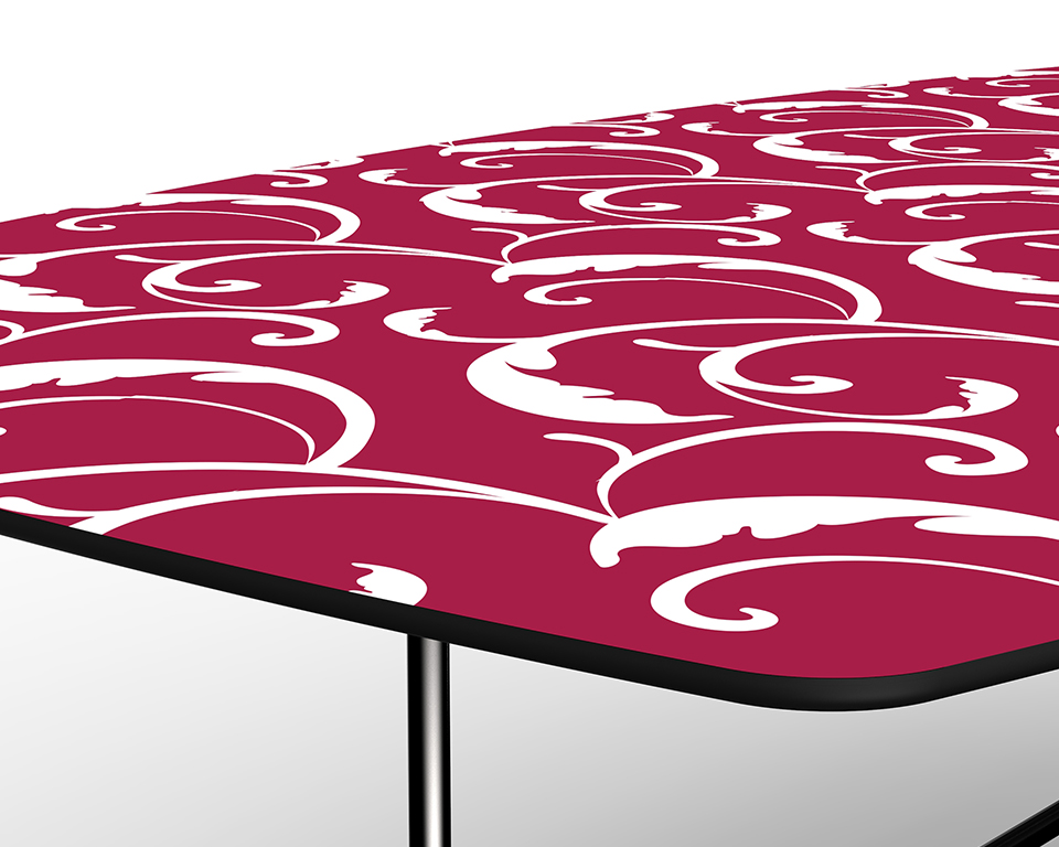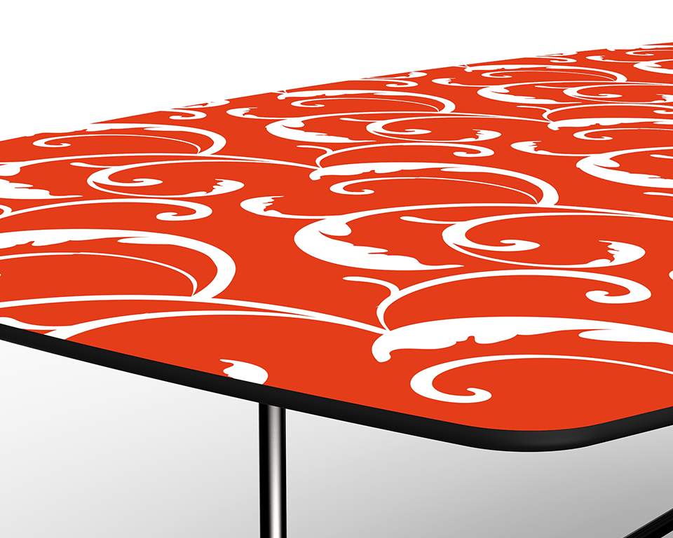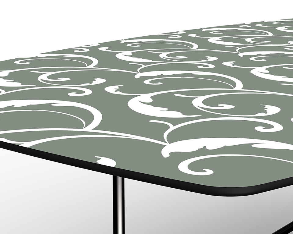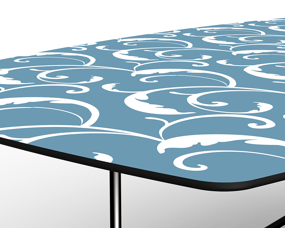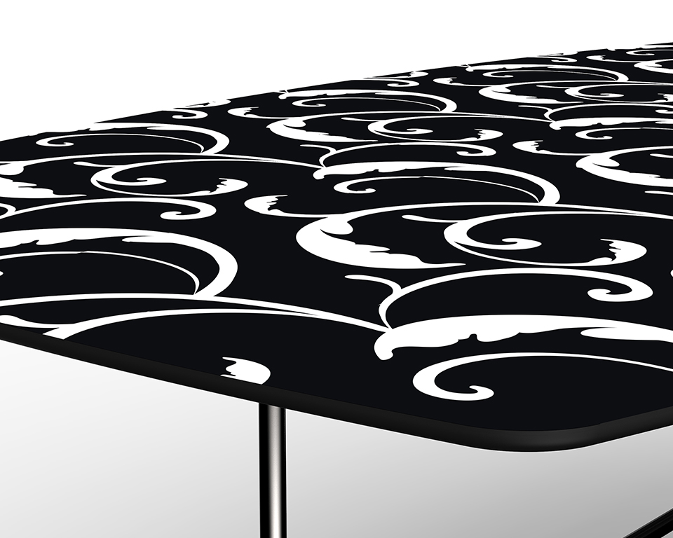 Finiture: Struttura: Acciaio o Ferro verniciato opaco a polvere epossidica. Piano: Laminato stampato in digitale.