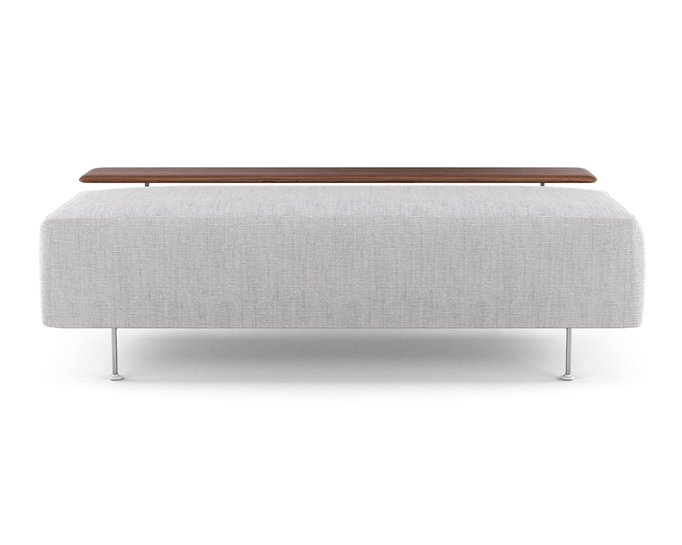 Panca in tessuto di ciniglia con piedi inox e pianetto noce