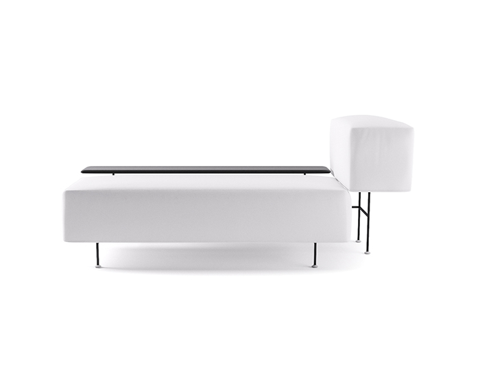Seduta relax rivestita in pelle naturale bianco con piedi ferro verniciato nero e pianetto frassino verniciato nero