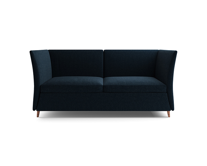 Divano 2 posti rivestito in tessuto intreccio colore blu (sfoderabile) con piedi in legno di noce americano