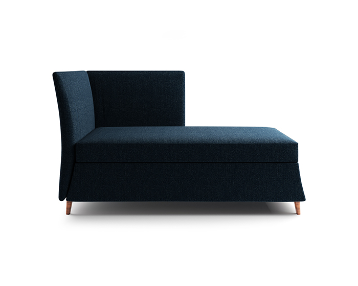 Dormeuse rivestita in tessuto intreccio colore blu (sfoderabile) con piedi in legno di noce americano
