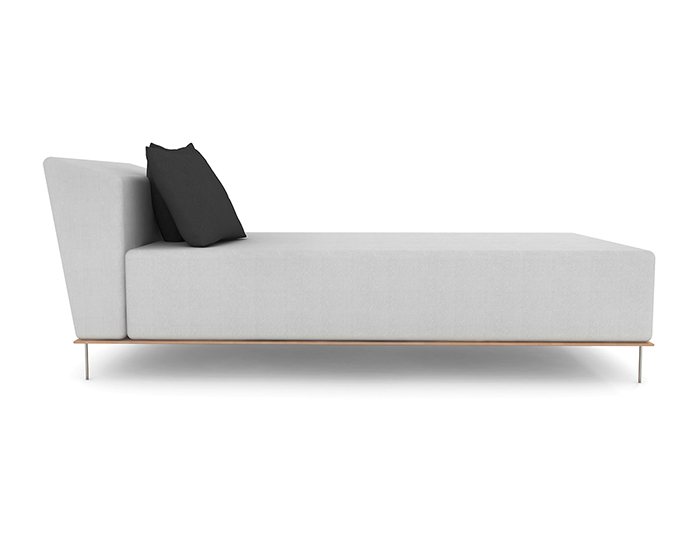 Letto rivestito in tessuto di tela di cotone colore bianco (sfoderabile) con piedi inox e pianetto in faggio