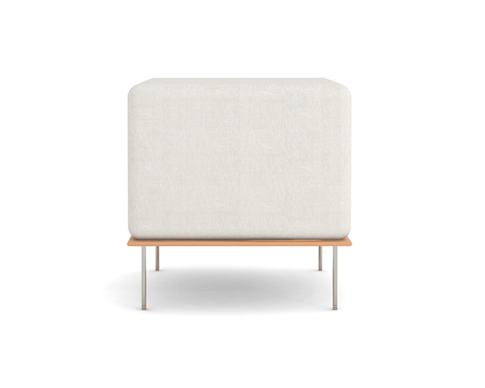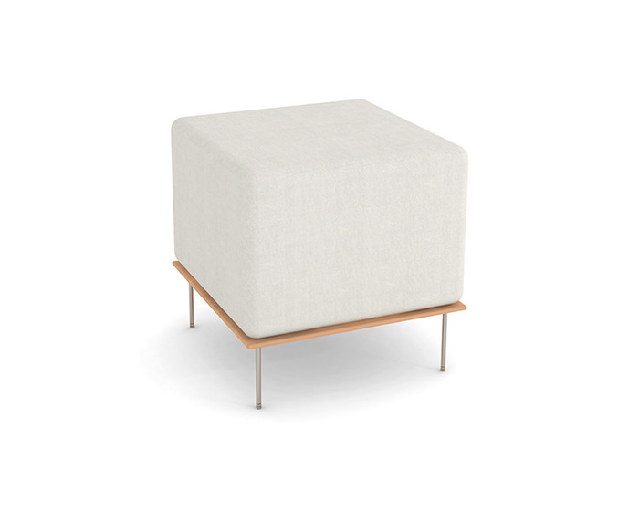 Pouf rivestito in tessuto di tela di cotone colore bianco (sfoderabile) con piedi inox e pianetto in faggio