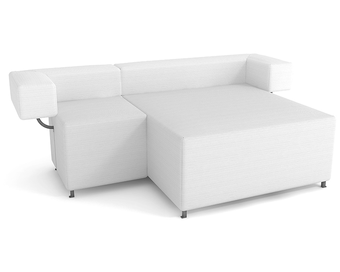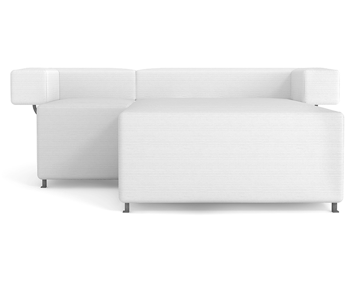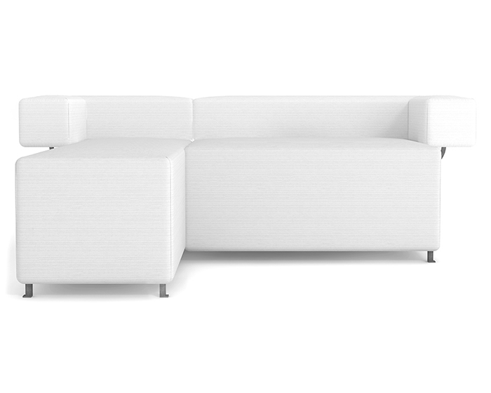 Divano rivestito con tessuto canapa colore bianco con piedi ferro satinato