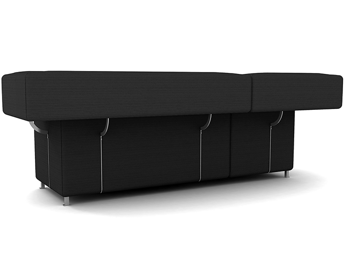 Divano rivestito con tessuto canapa colore ardesia con piedi acciaio inox