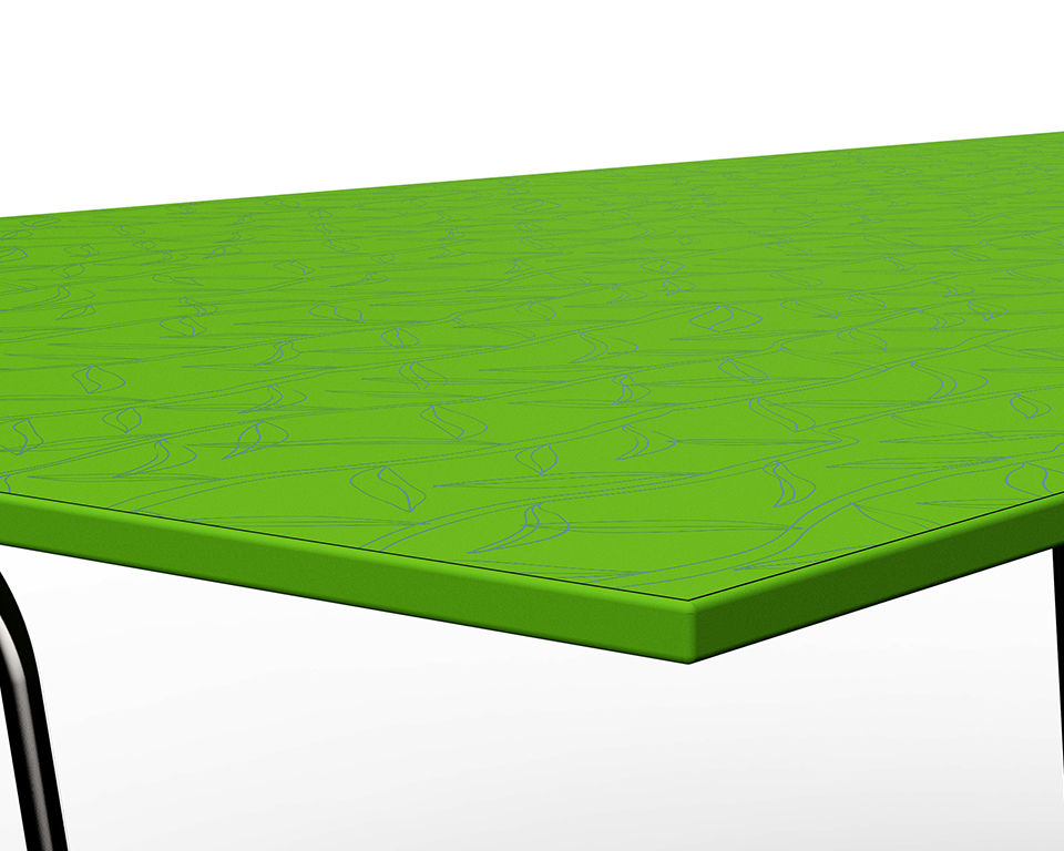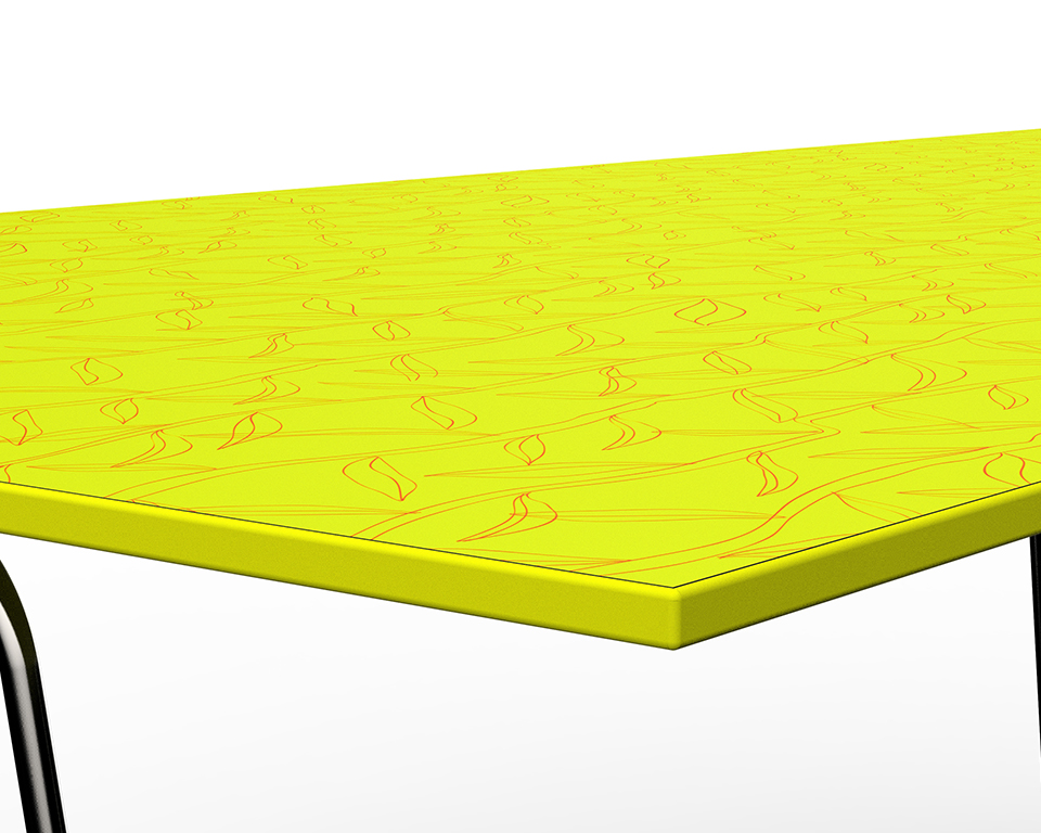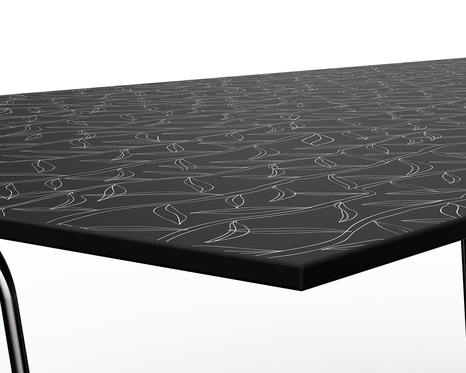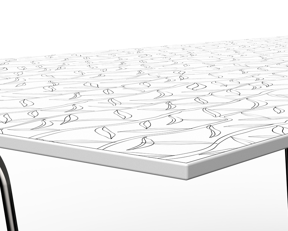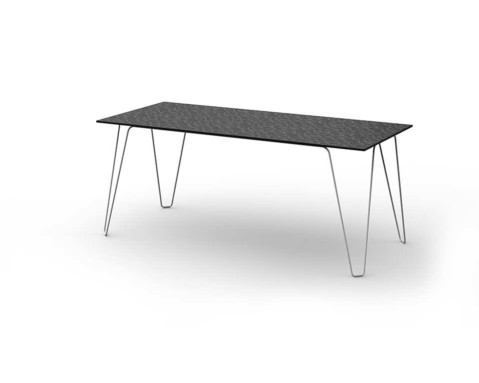 Finiture: Struttura: Acciaio o Ferro verniciato opaco a polvere epossidica. Piano: Laminato stampato in digitale.