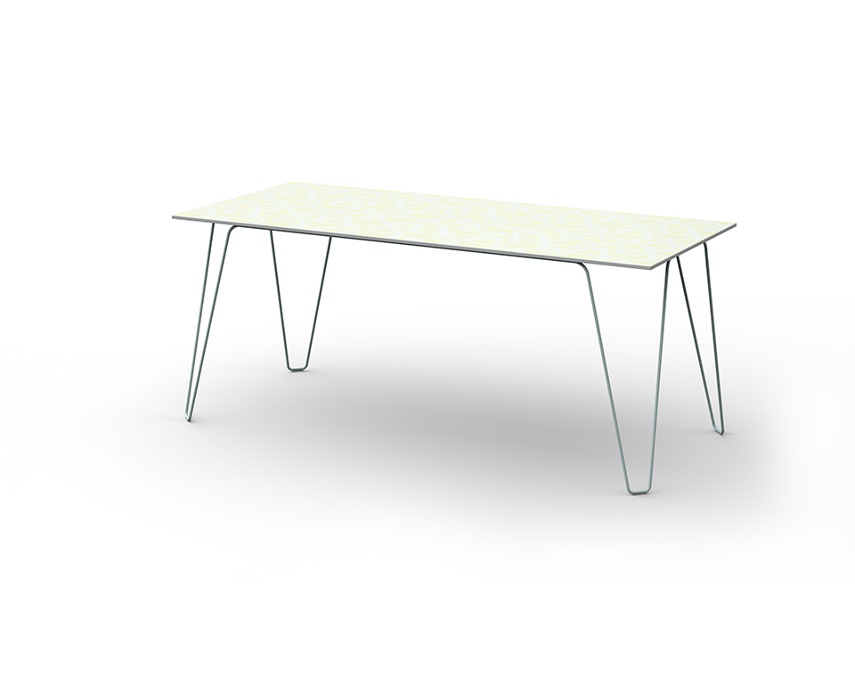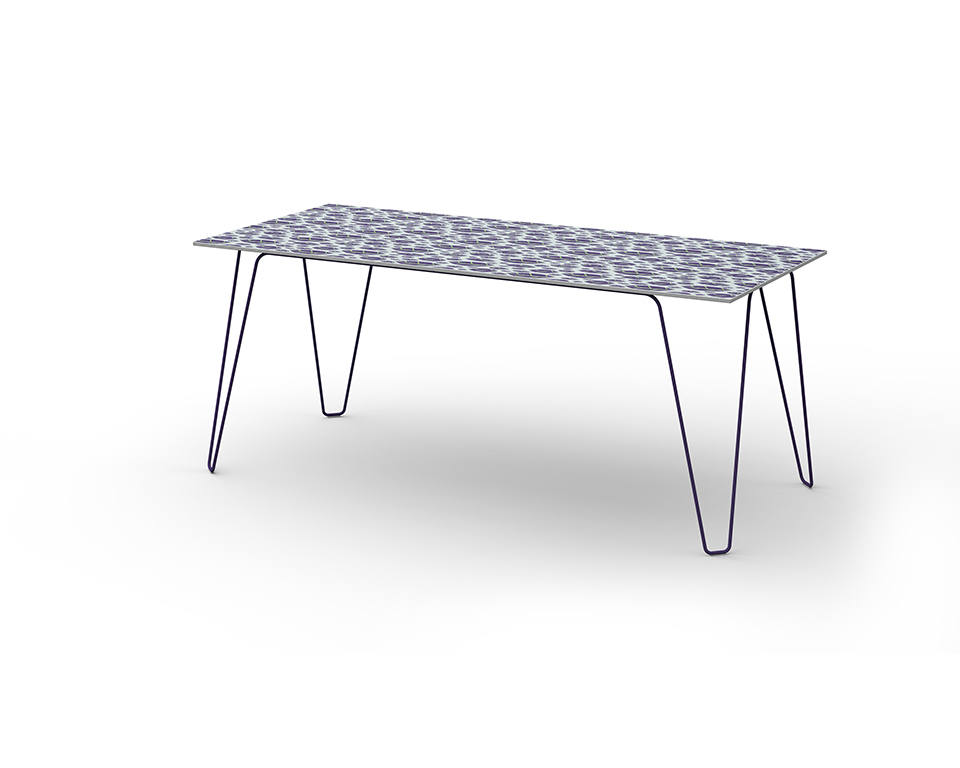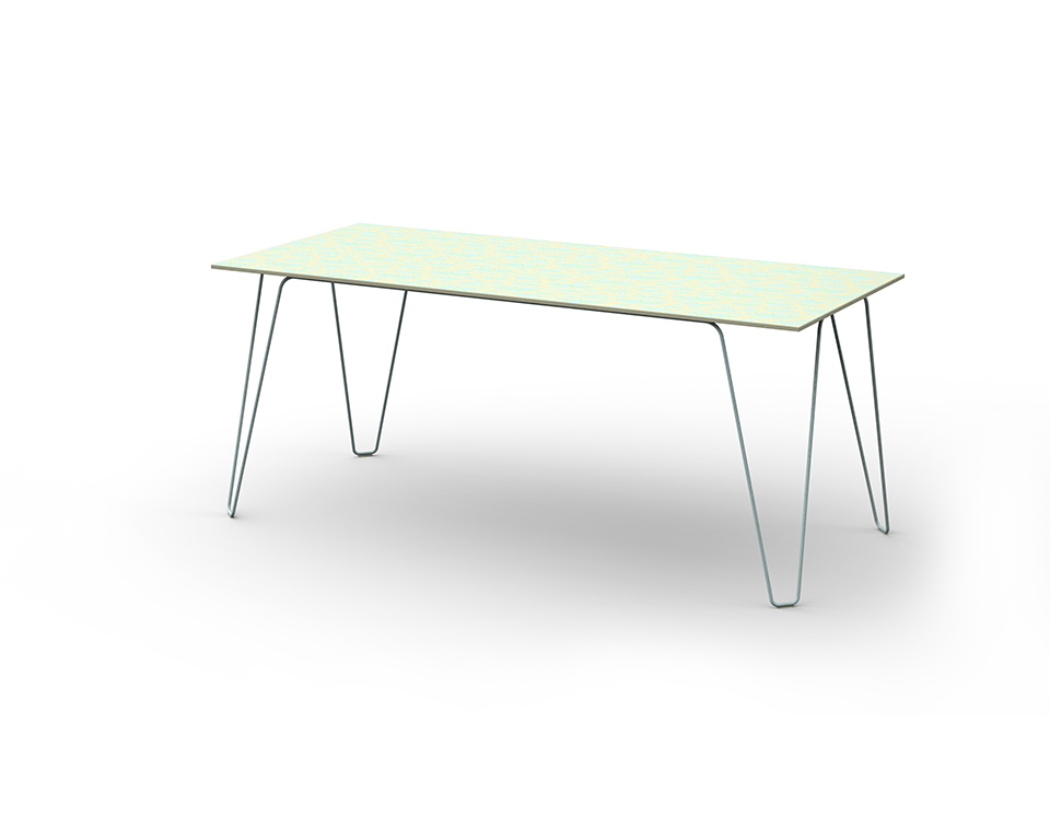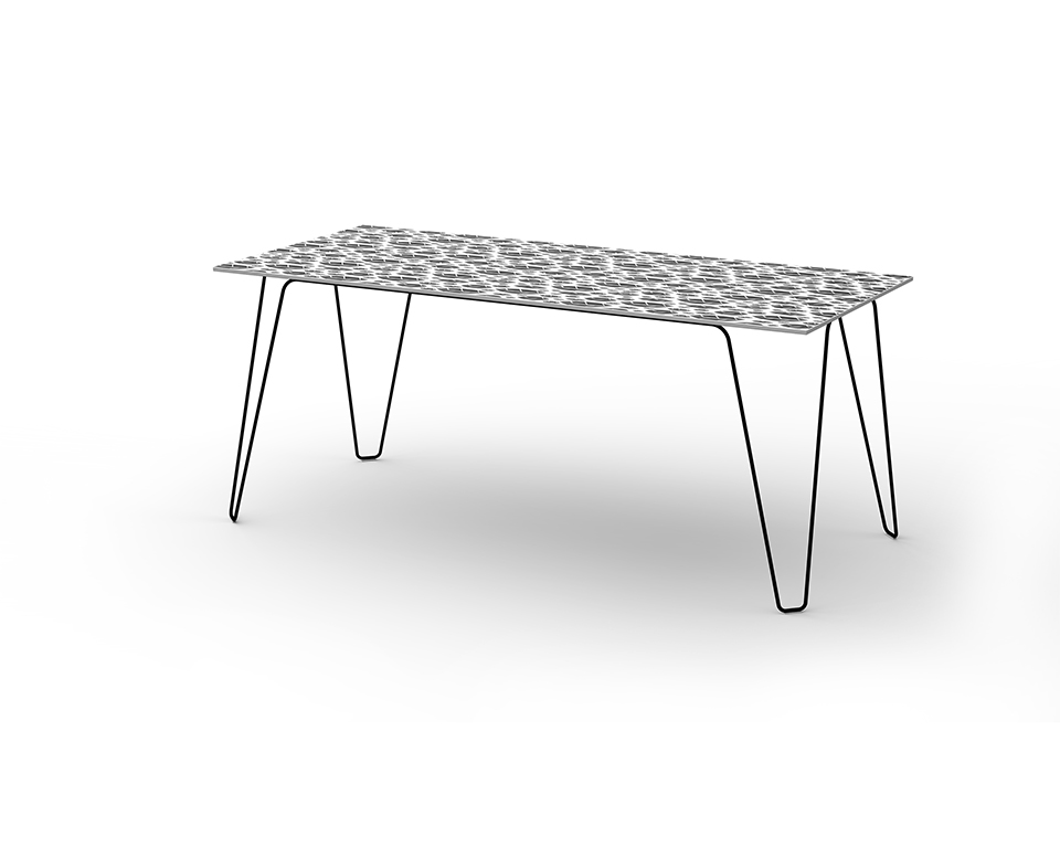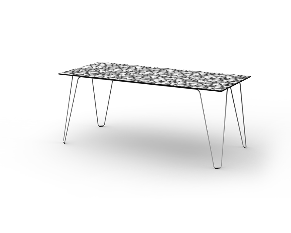 Finiture: Struttura: Acciaio o Ferro verniciato opaco a polvere epossidica. Piano: Laminato stampato in digitale.