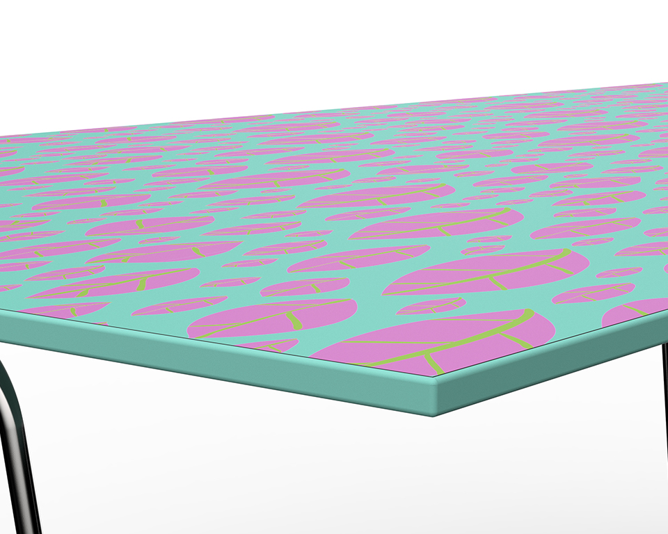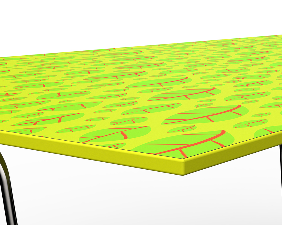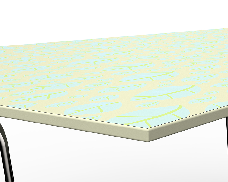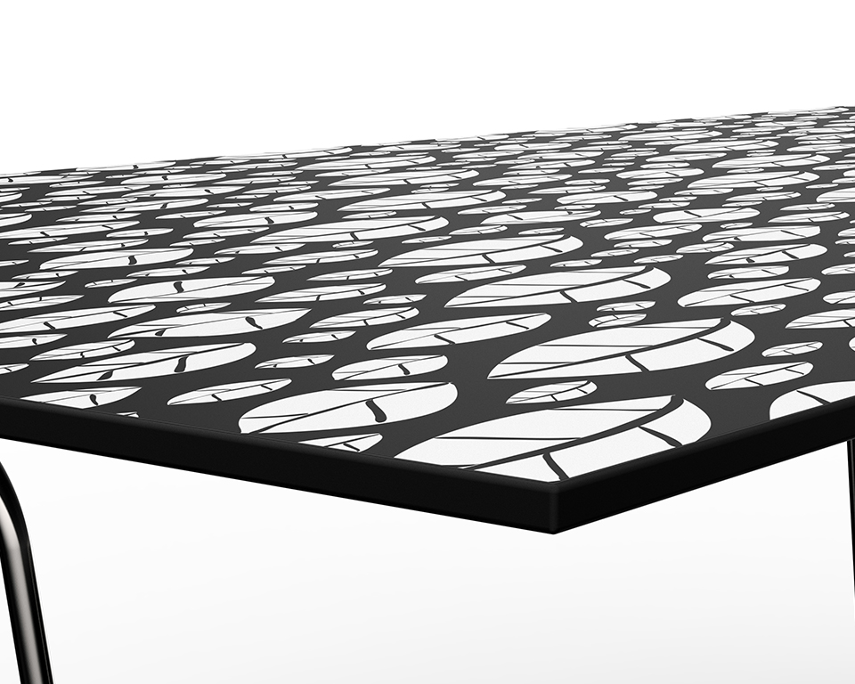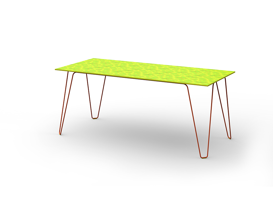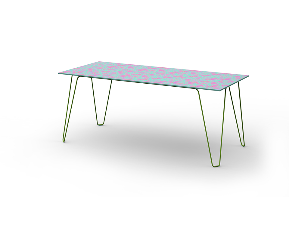 Finiture: Struttura: Acciaio o Ferro verniciato opaco a polvere epossidica. Piano: Laminato stampato in digitale.
