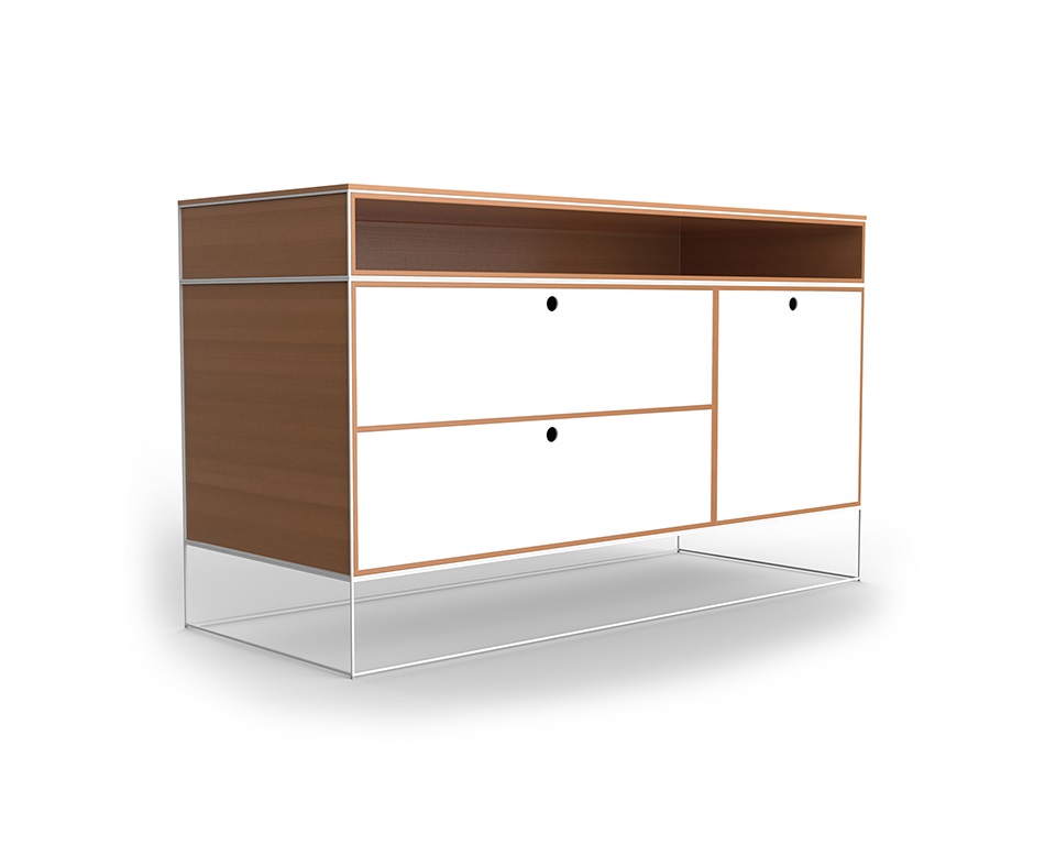 Finiture: Telaio: Acciaio, Ferro verniciato opaco. Pianetti e Box: Legno, laminato, laccato opaco, nobilitato melaminico, vetro trasparente o retroverniciato.