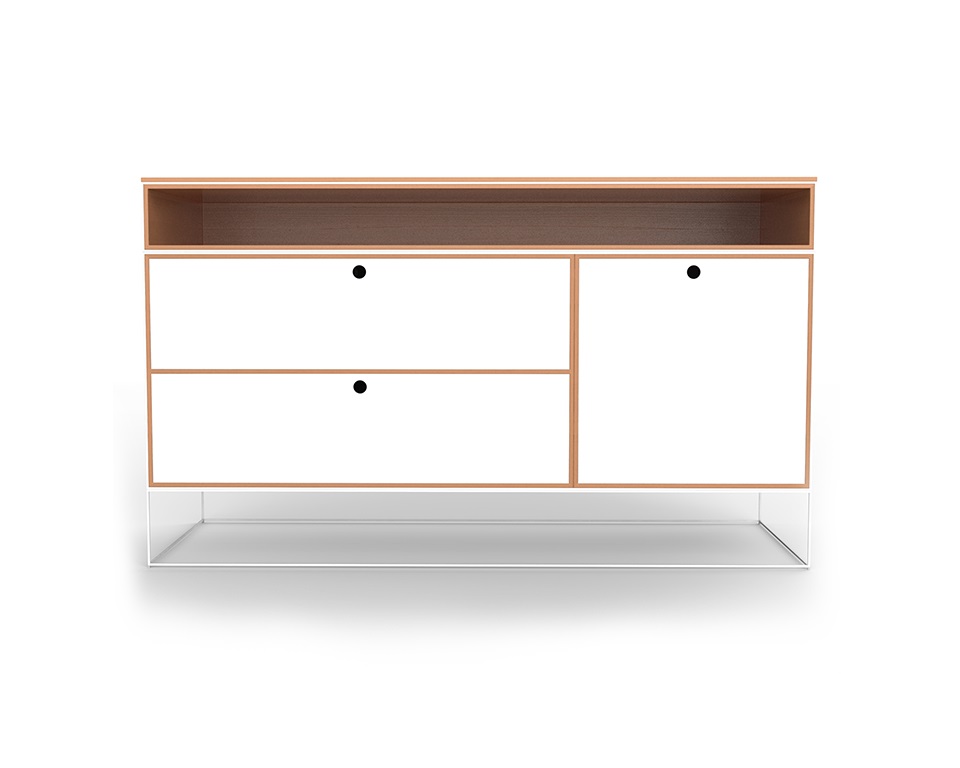 Cassettone in faggio e laccato bianco con telaio verniciato bianco