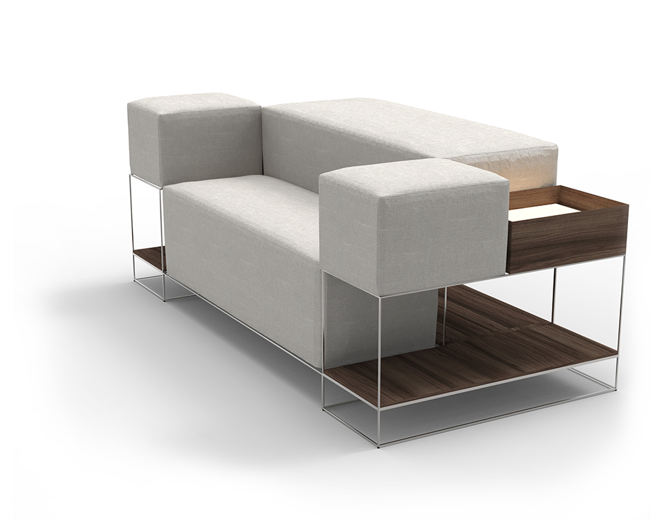 Divano 2 posti, Basso e Alto, in panno di puro cotone con telaio verniciato bianco + Divano attrezzato + Divano ASI