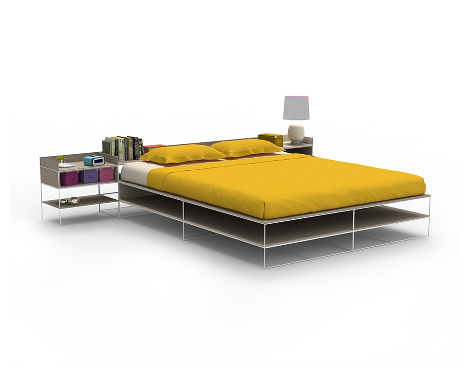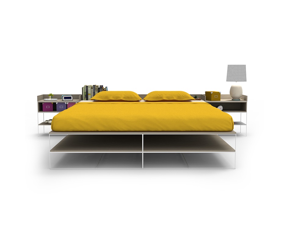 Letto in melaminico frassino canapa con telaio verniciato bianco