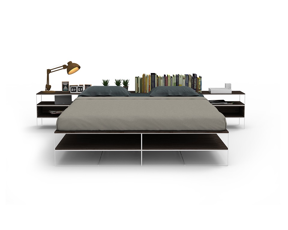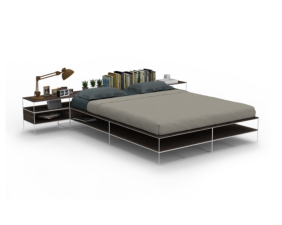 Letto in melaminico olmo ossido con telaio verniciato bianco