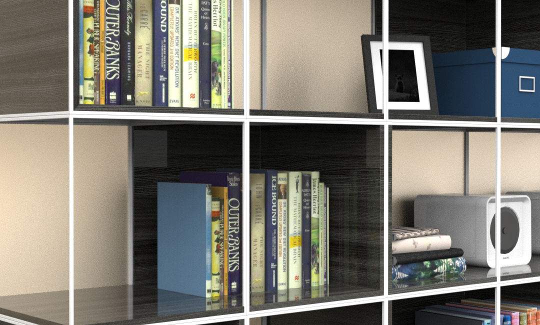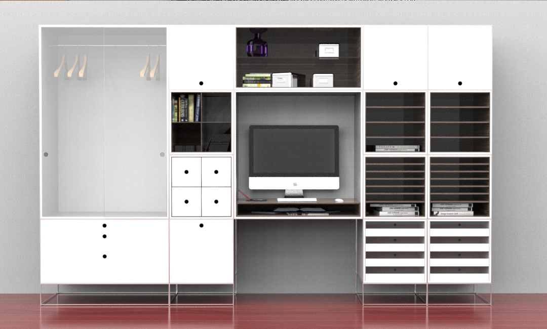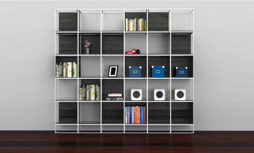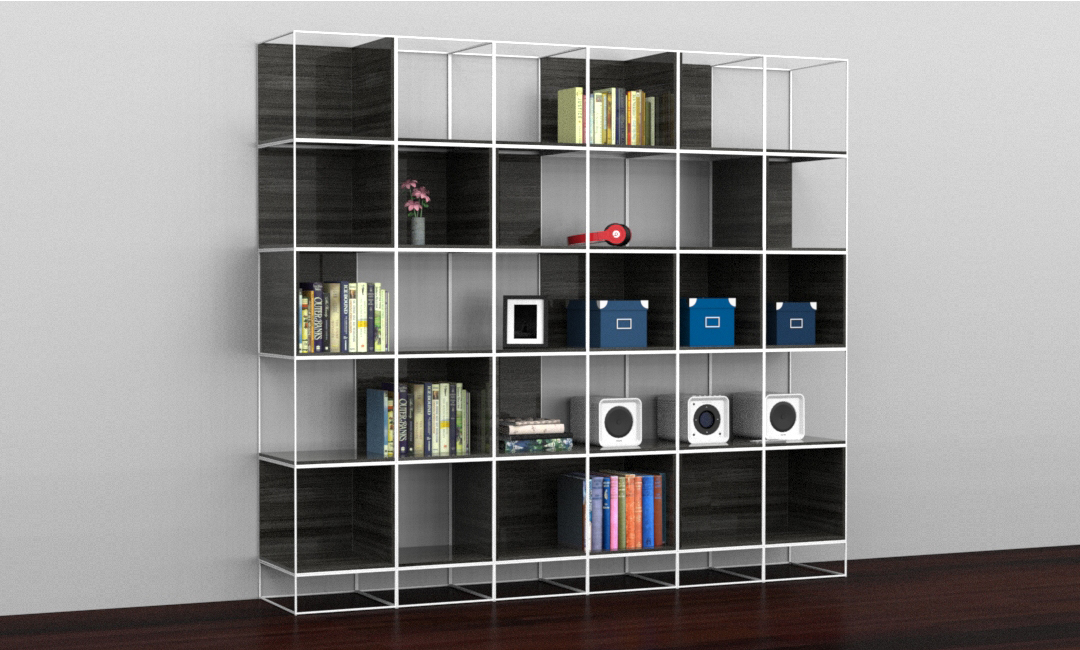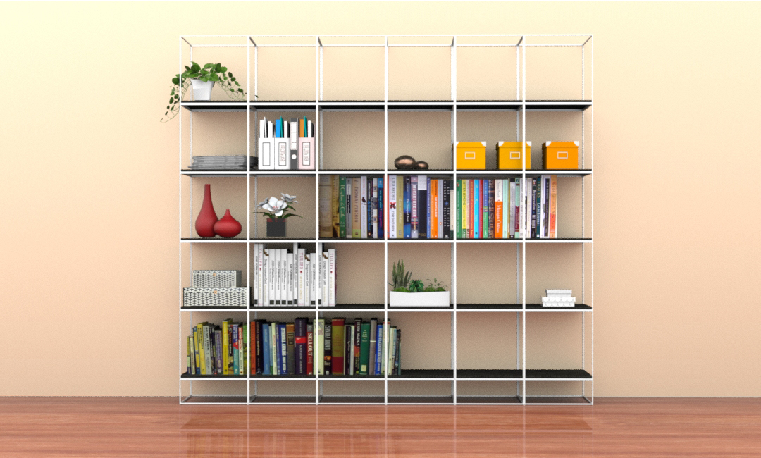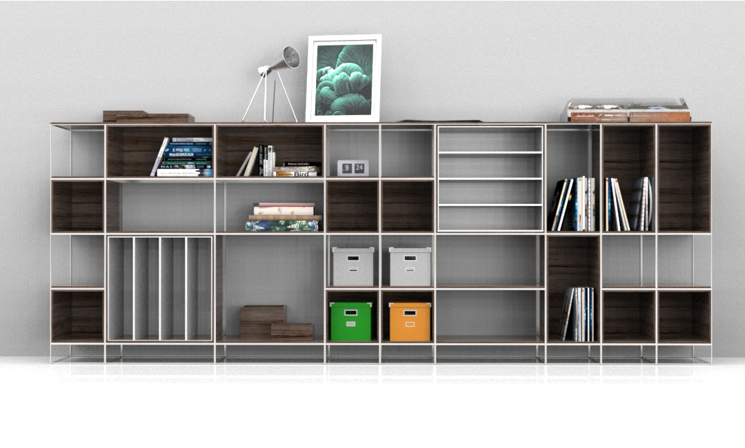 La struttura in metallo dei telai consente di costruire dei reticoli dalle infinite possibilità e gli elementi box, pianetti e imbottiti permettono di ottenere le funzioni più disparate: scaffali e tavoli, la cucina, i divani, gli elementi per la camera. Gli elementi possono essere ricomposti e ricollocati grazie a semplici operazioni di affiancamento e sovrapposizione. Pulizia delle linee e volumi ridotti restituiscono un risultato estetico fresco e leggero.