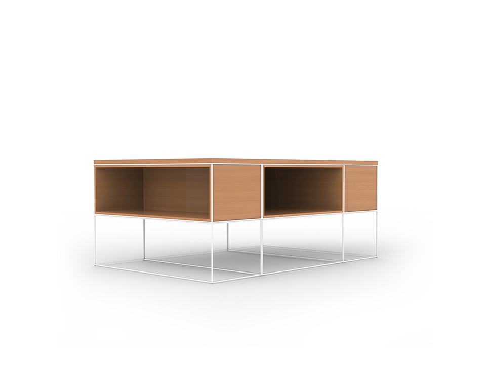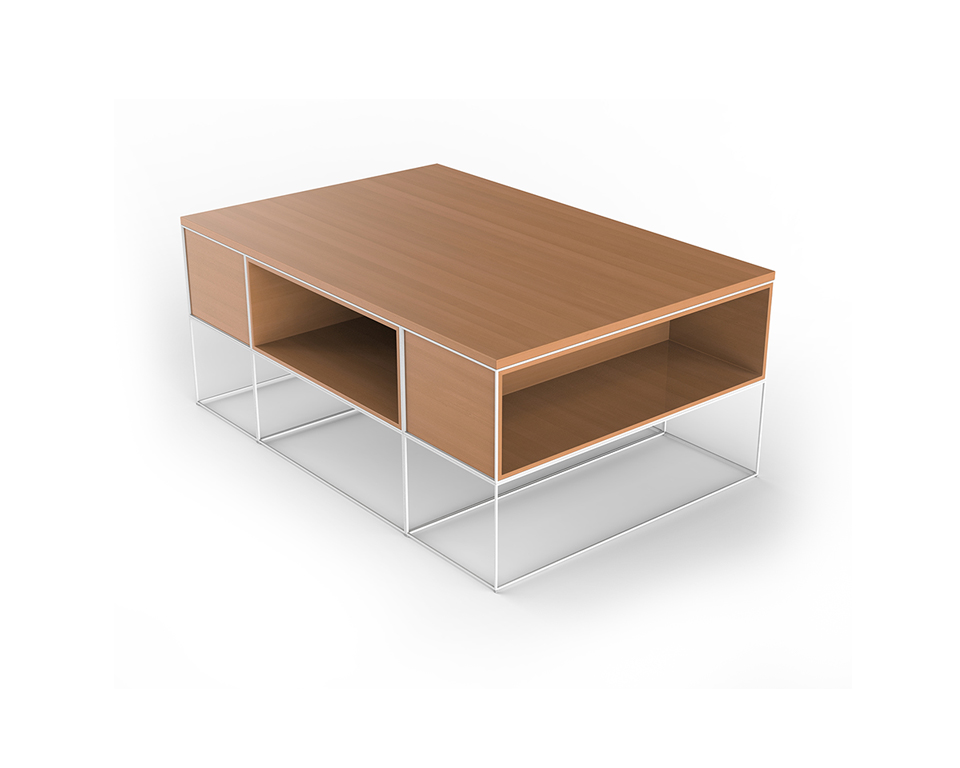Finiture: Telaio: Acciaio, Ferro verniciato opaco. Pianetti e Box: Legno, laminato, laccato opaco, nobilitato melaminico, vetro trasparente o retroverniciato.