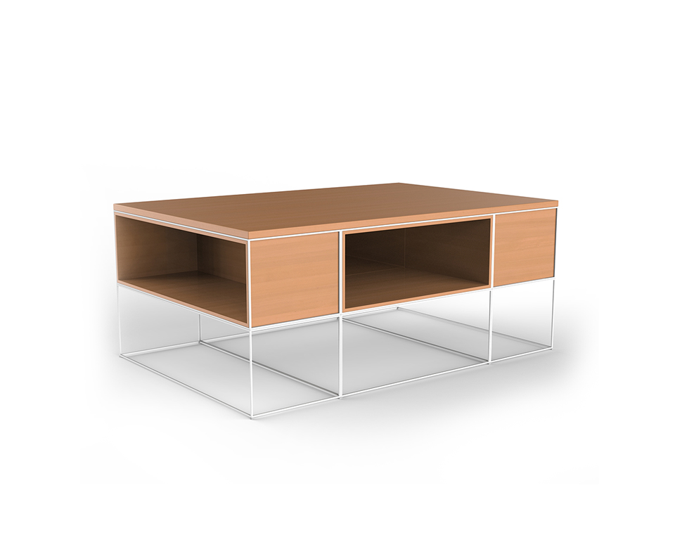 Tavolino rettangolare in faggio con telaio verniciato bianco