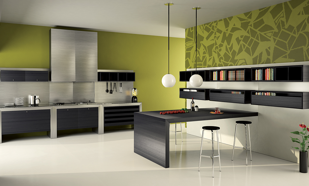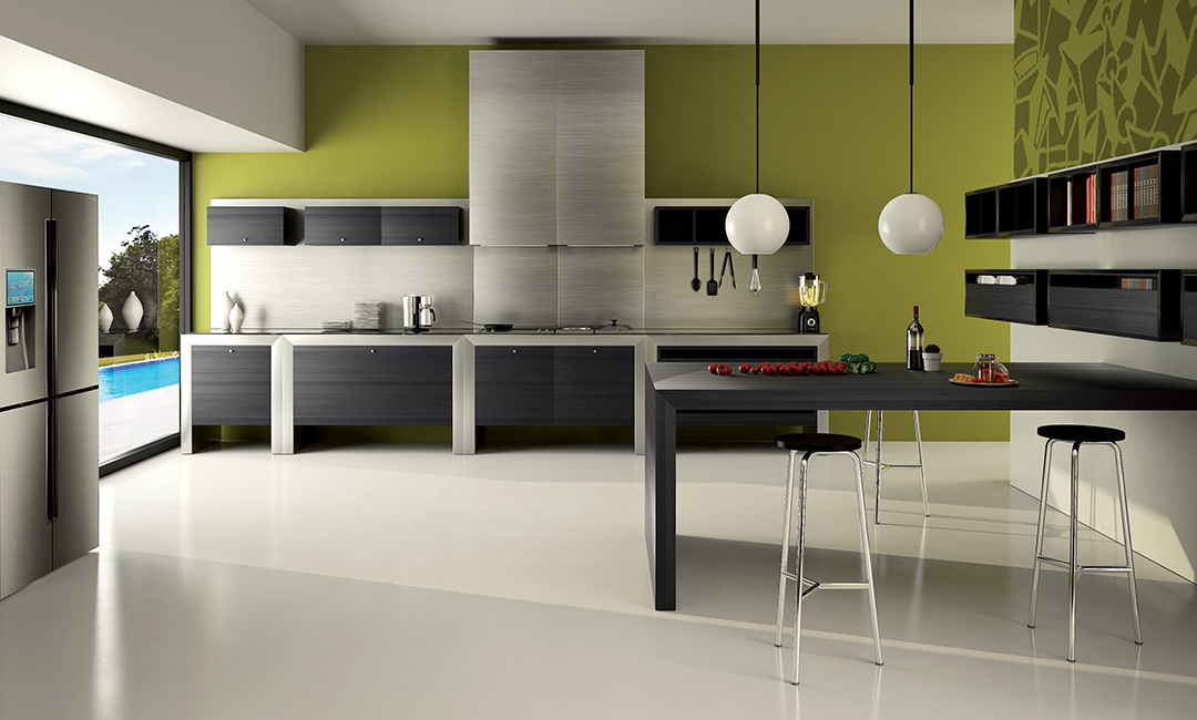 Un Blocco Cucina portante che può ospitare sia bussolotti sospesi, K BS, che su ruote, K BR, per consentire una possibilità concreta di accesso alle parti sottostanti le zone lavoro, solitamente negli anni ricettacolo di cattiva igiene. Il Portale, ripetibile sul piano lavoro e da supporto ai pensili è l’elemento caratterizzante di questa Work Cooking, operativa e ricercata.