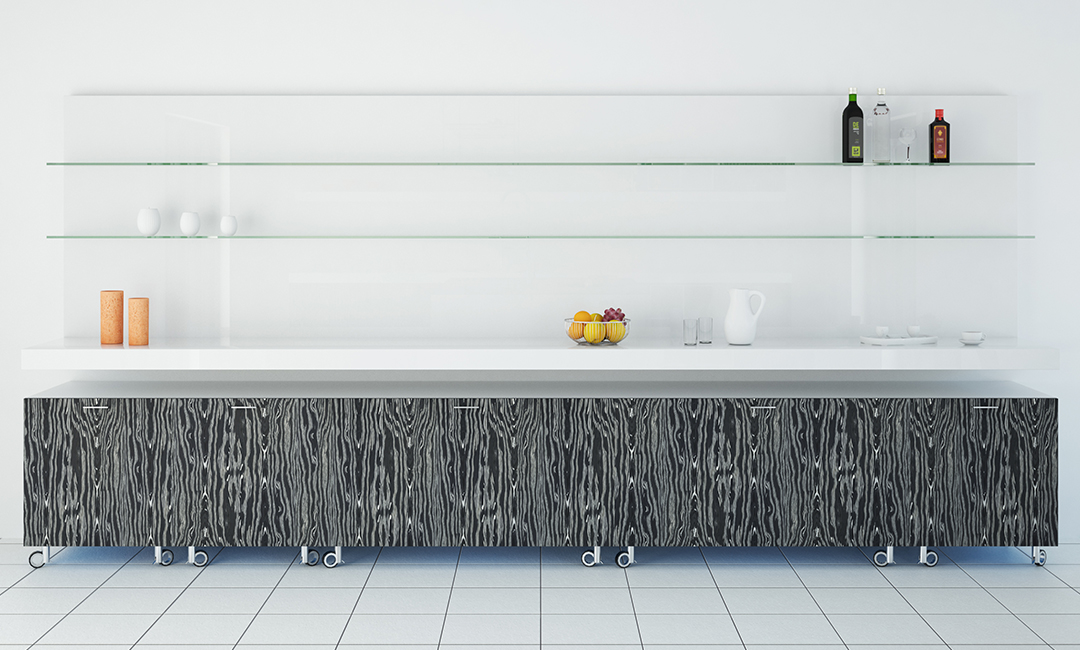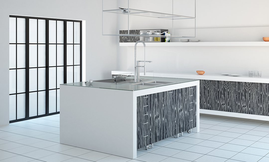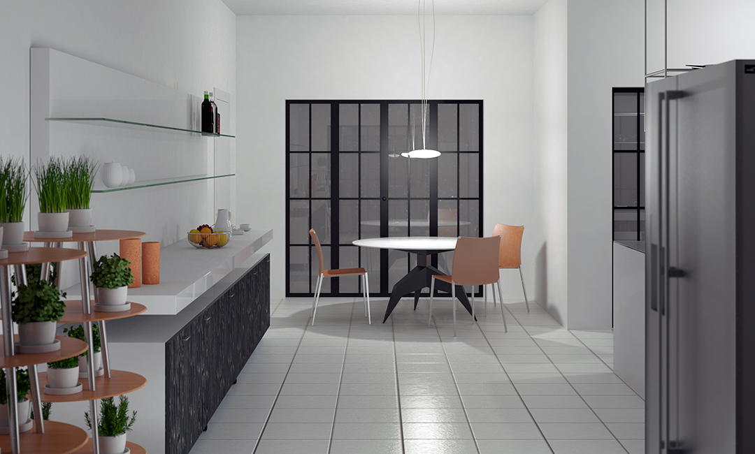 La struttura del portale costituisce un blocco unico al cui interno sono inseriti i bussolotti in diverse varianti e in particolare gli elementi a giorno attrezzabili con vari box intercambiabili. Una delle novità di questa serie è il supporto in vetro per i banconi e la variante, sempre in vetro anche retroilluminato, delle boiseries. Sono disponibili elementi cucina e mobili bloccati con ante scorrevoli in legno e laccate o vetro trasparente e retroverniciato.