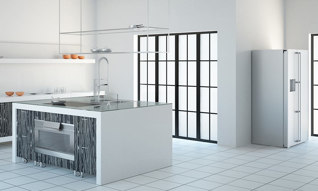 I Portali E ed F sono pannelli a parete con mensoloni aggettanti orizzontali ai quali si agganciano i bussolotti; il Portale L è un pannello con un solo mensolone che può essere portante o fungere da piano lavoro sovrastante i bussolotti con ruote. Costante del SISTEMA K la facilità di accesso per pulizia ed igiene.