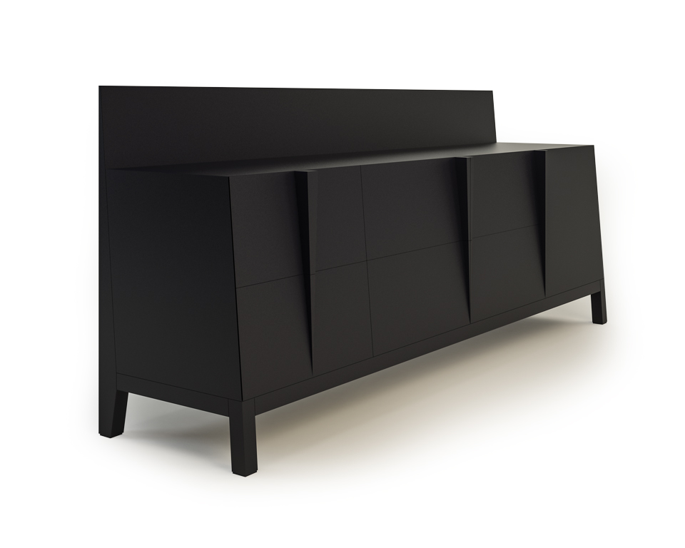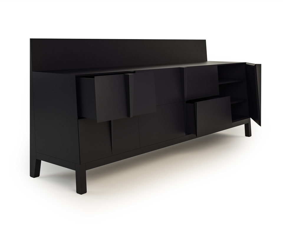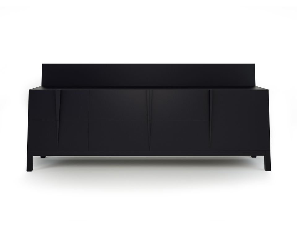 Madia laccata nero grafite, 1 anta grande, 4 ante piccole e 2 cassetti.