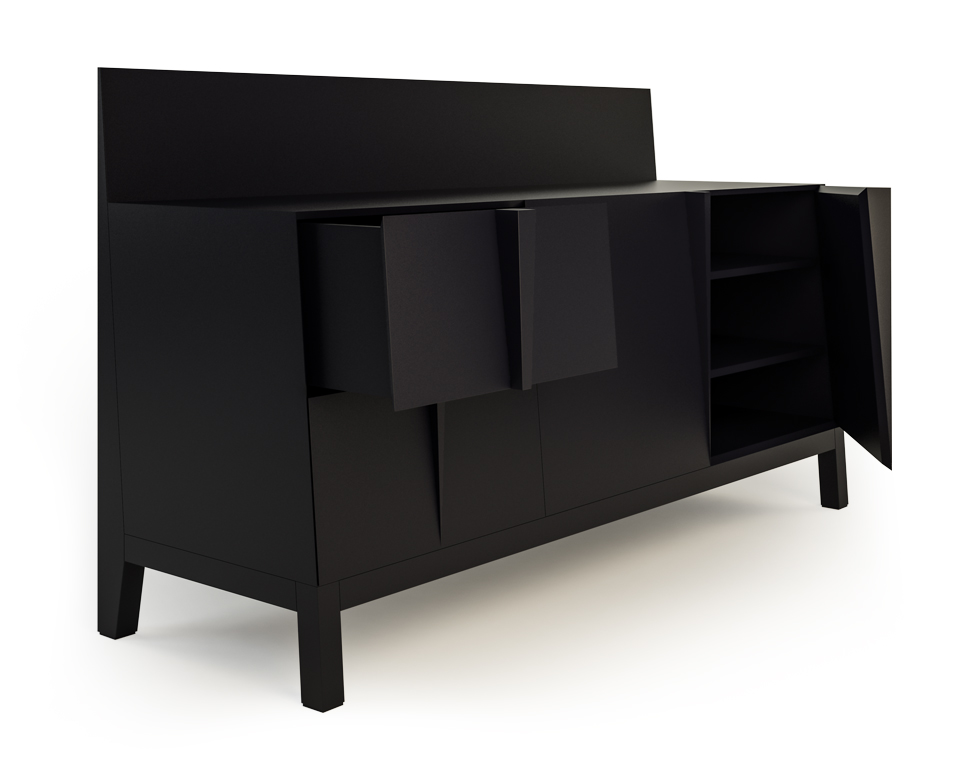 Madia laccata nero grafite, 2 ante e 2 cassetti.