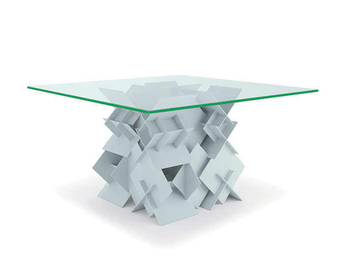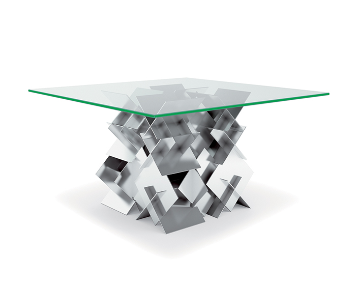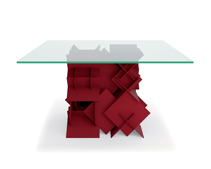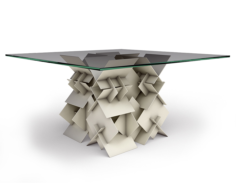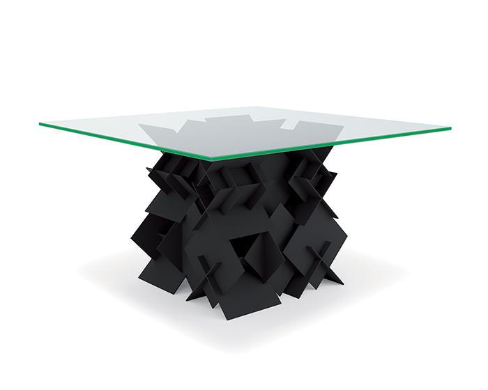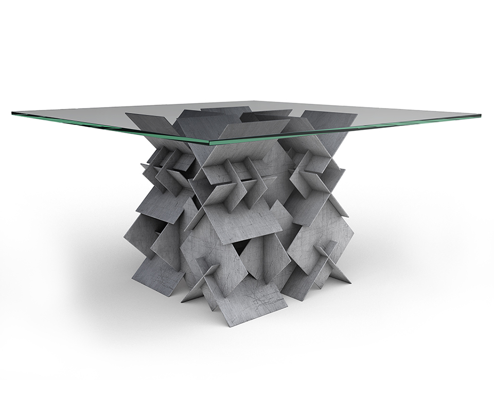 Tavolo in ferro verniciato opaco nero grafite con piano vetro trasparente